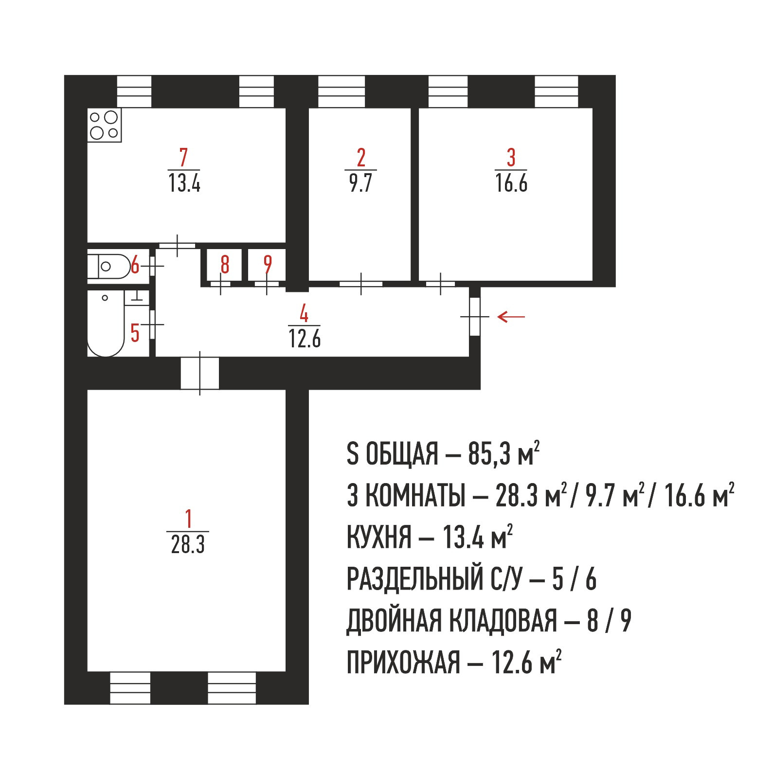 Общая площадь 85.3 м2