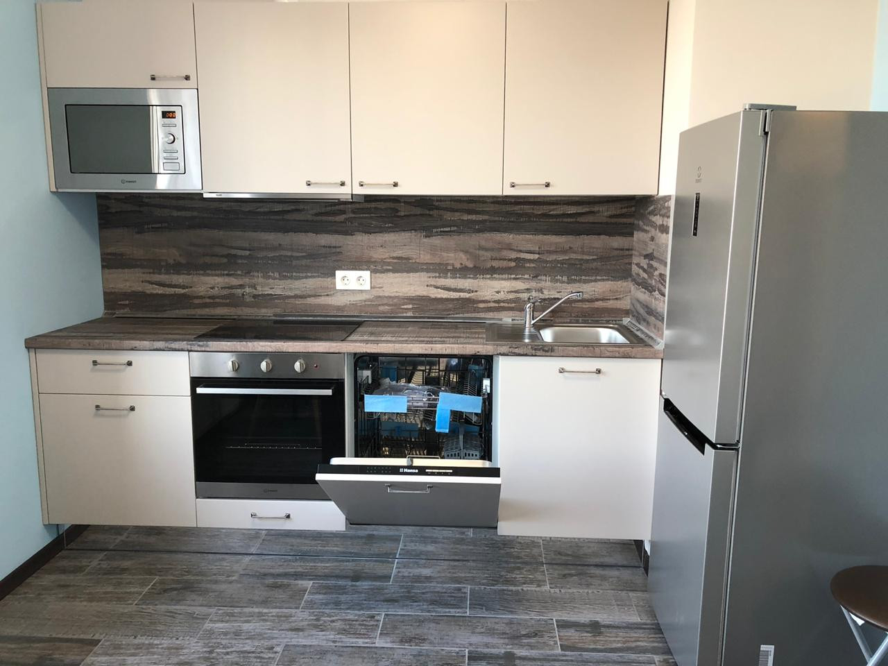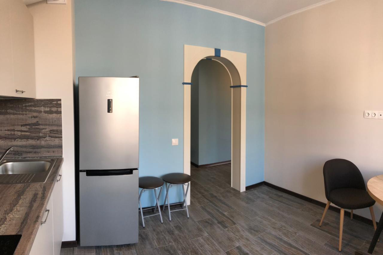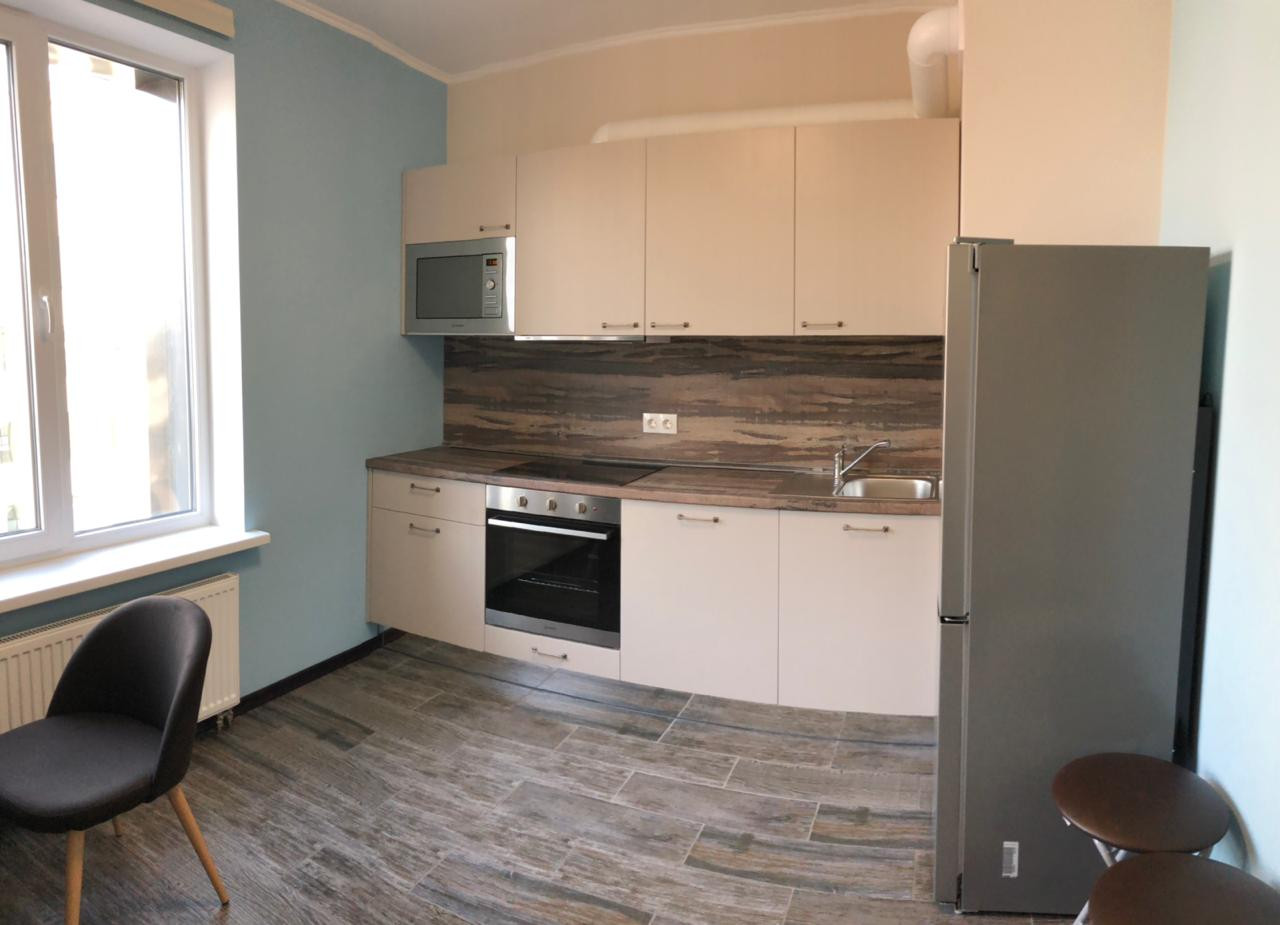 Продаю просторную, уютную, светлую 1 к. кв-ру. Прямая продажа. 1 собственник. Собственности более 5-и лет. Территория жилого комплекса огорожена, видеонаблюдение. Имеются детская и спортивная площадки. Документы готовы. Видовая. Евроремонт. Лоджия - застекленная. Общая площадь = 43,3 кв.м., площадь комнаты = 19,8 кв.м., площадь кухни = 10,4 кв.м. С/У - совмещенный. Душевая кабина. Импортная сантехника. Фильтры по очистке воды.