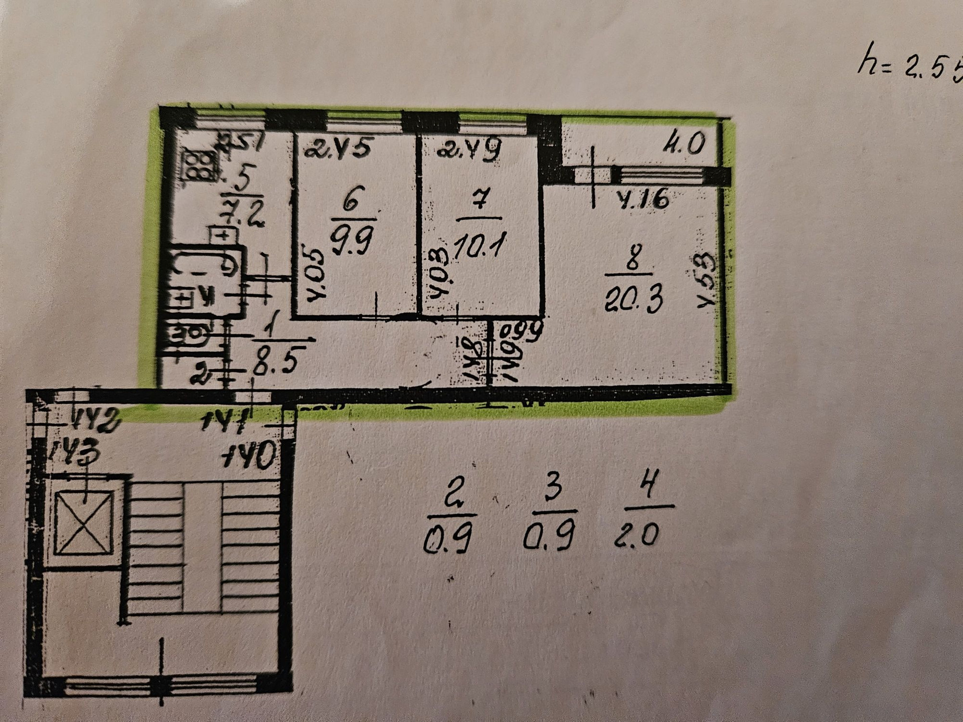 Высота потолков 2.5 м