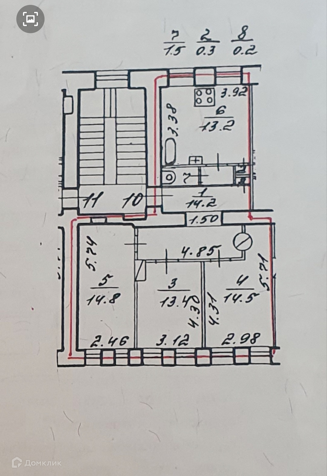 3 изолированные комнаты- 14,5м², 13,4м², 14,8м²
