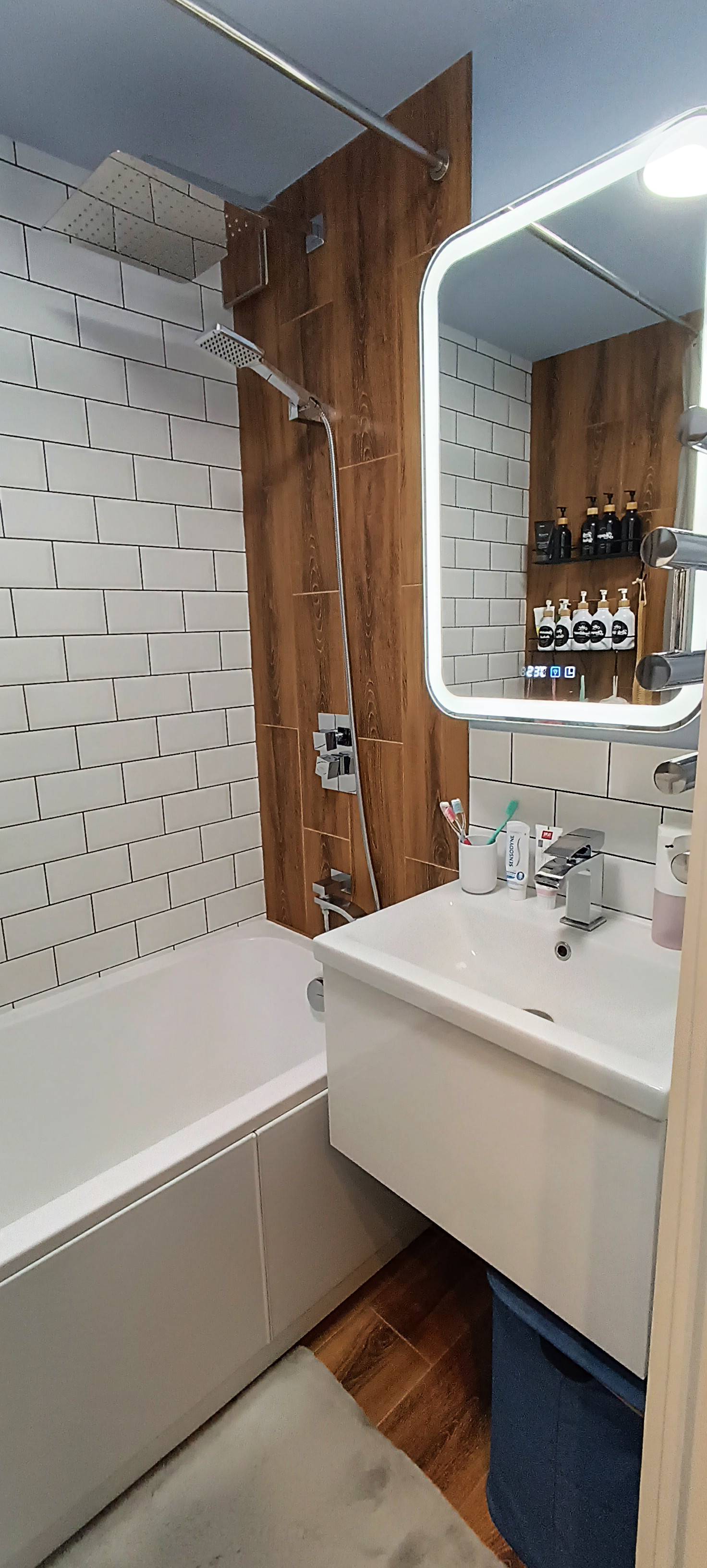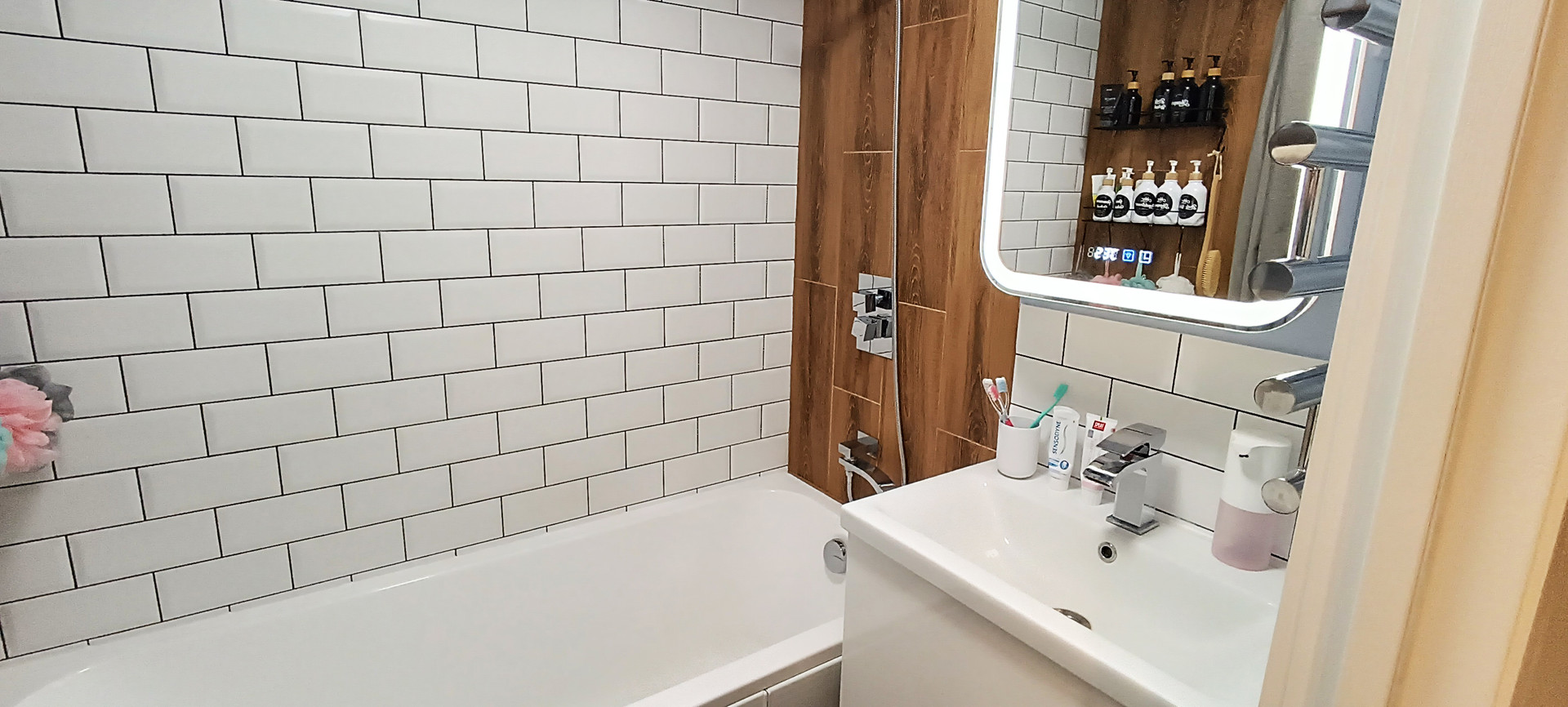 - в санузле установлена новая белоснежная ванная, новая сантехника и смесители;