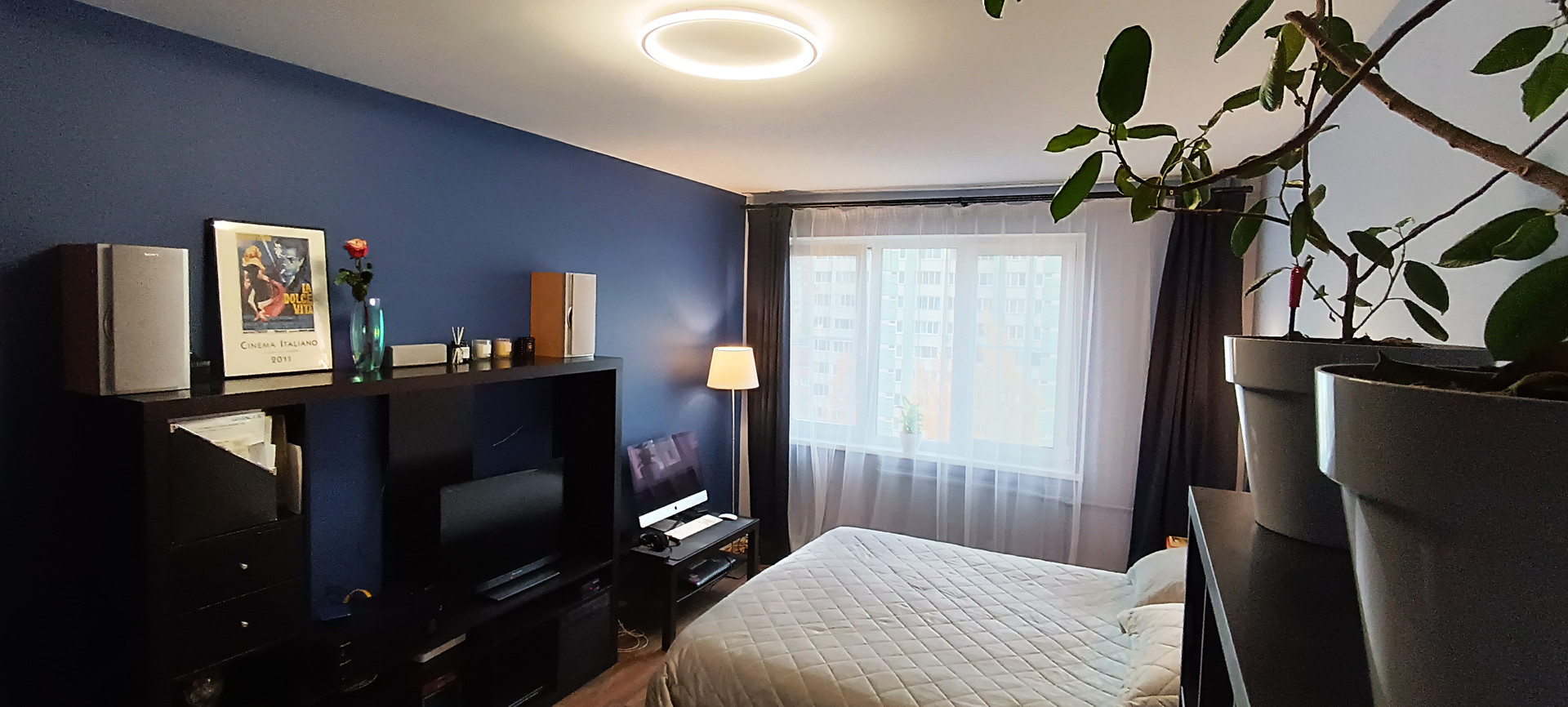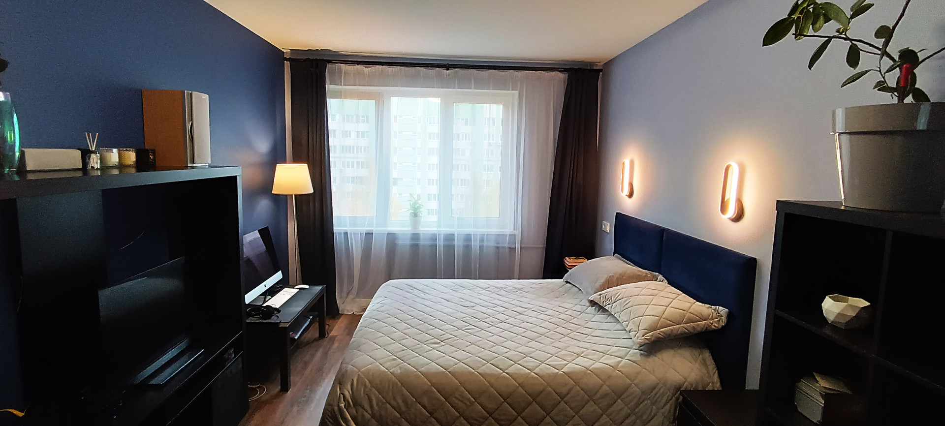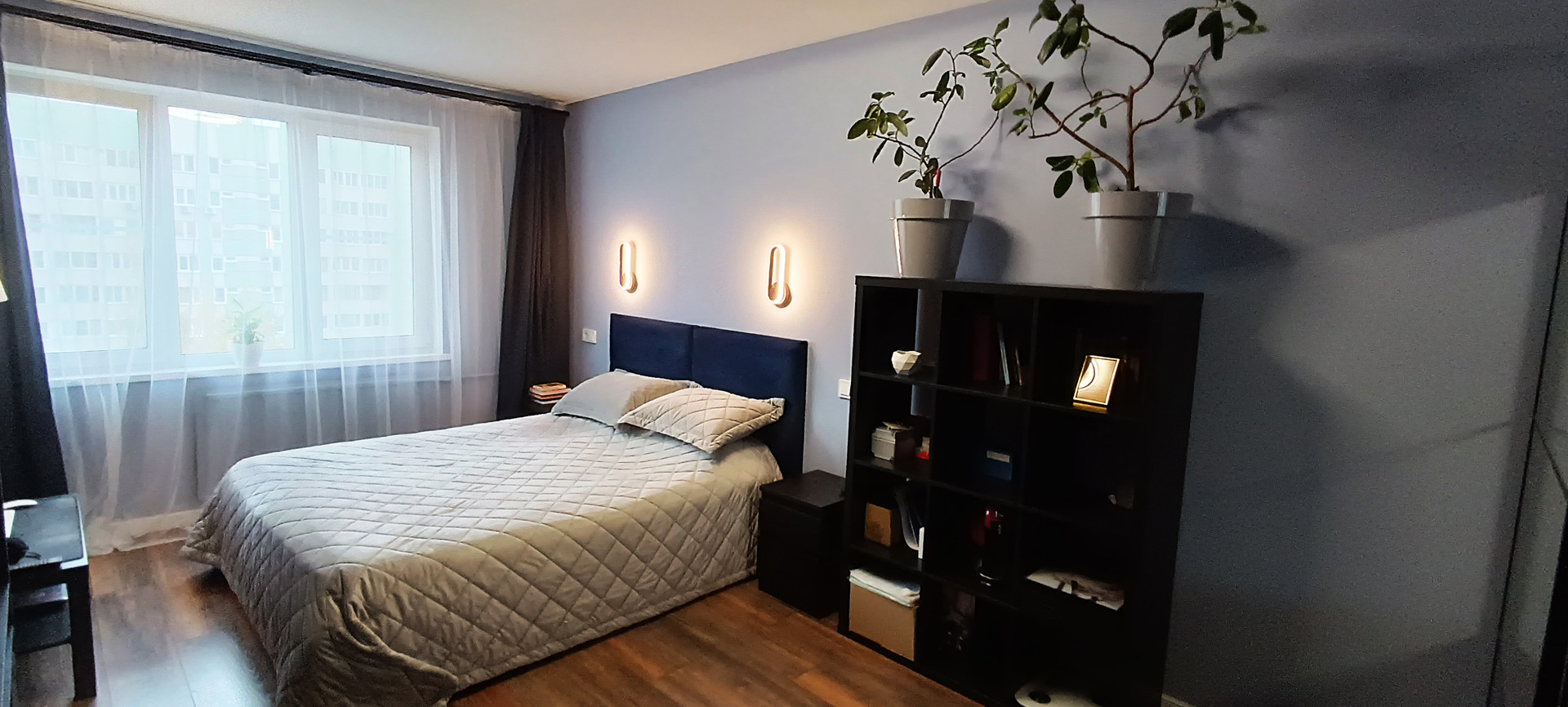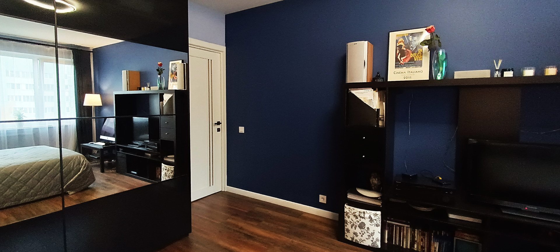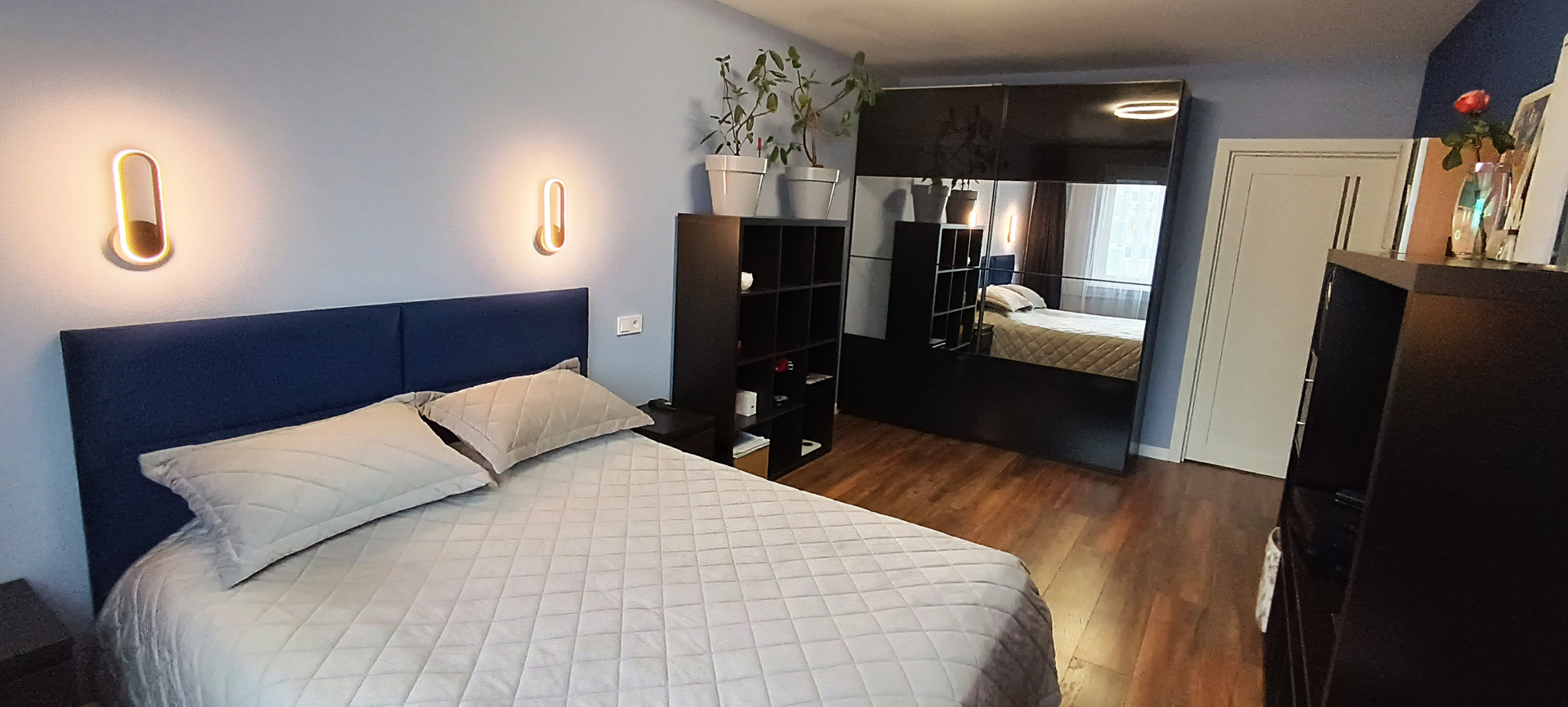 - в спальне (17,6 кв.м) стоит двуспальная кровать и большой вместительный шкаф-купе;