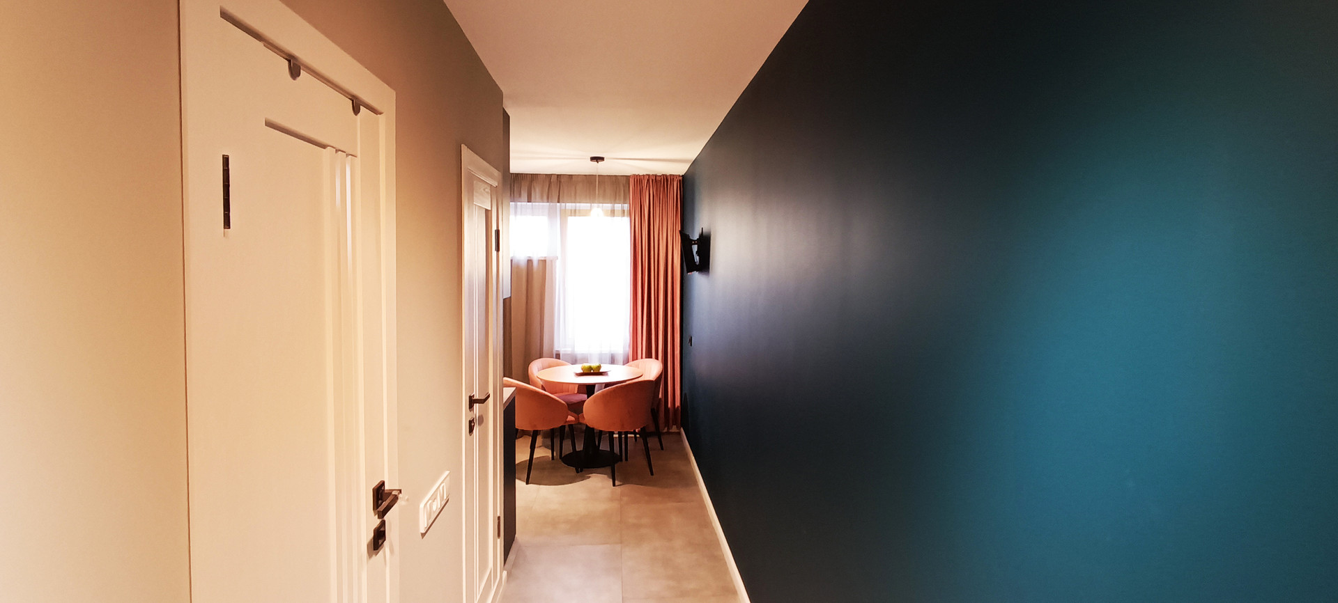 - стены выровнены и окрашены в очень комфортной световой гамме;