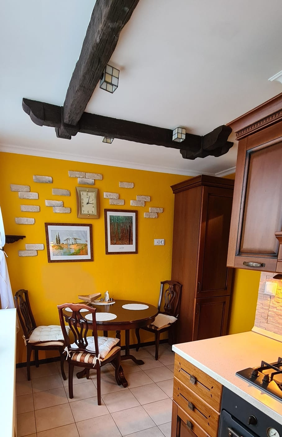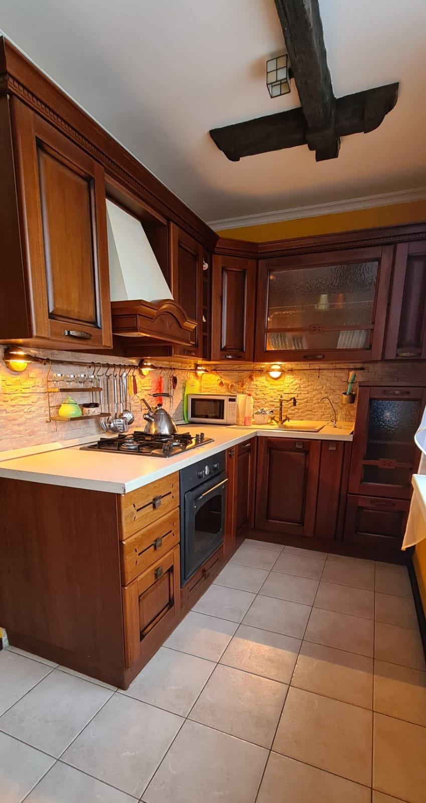 -Мебель на кухне и спальне из массива.