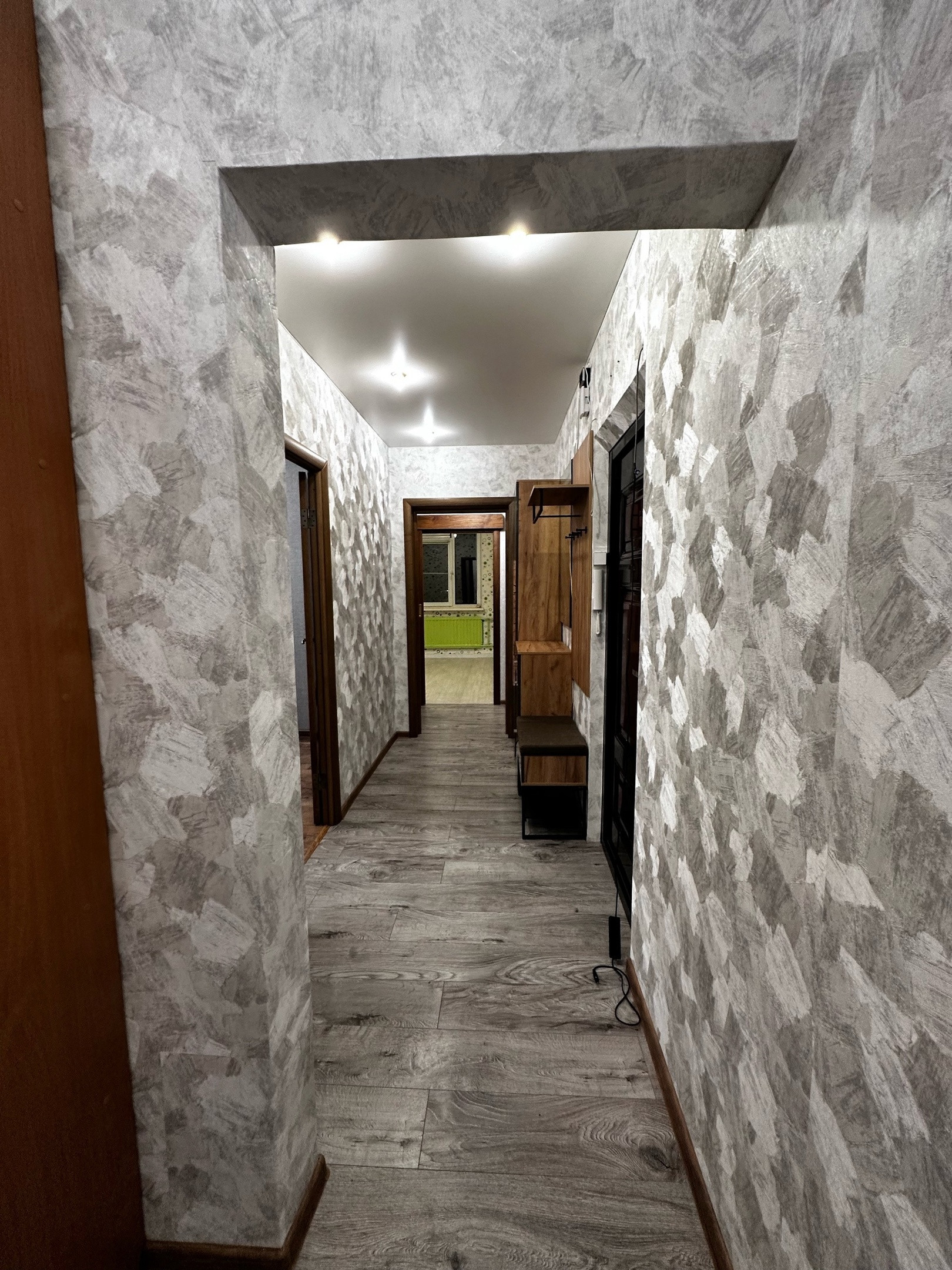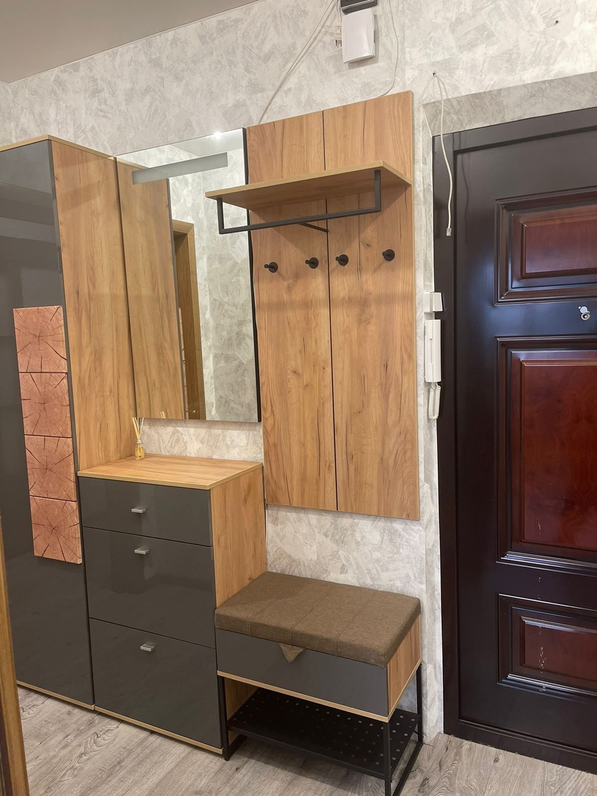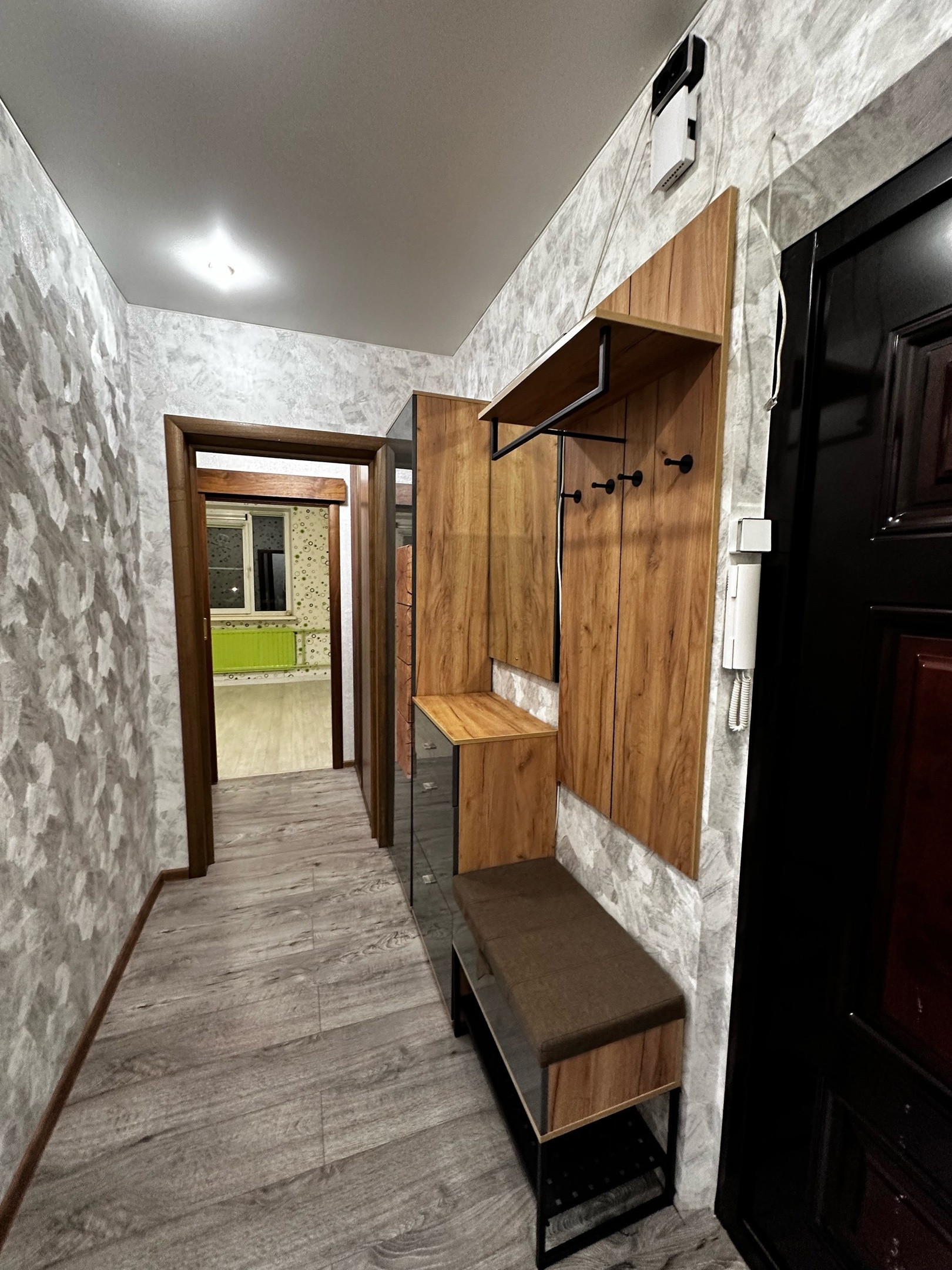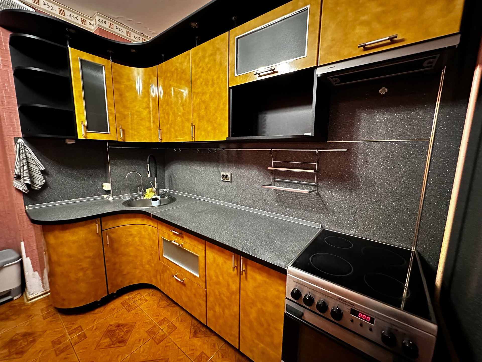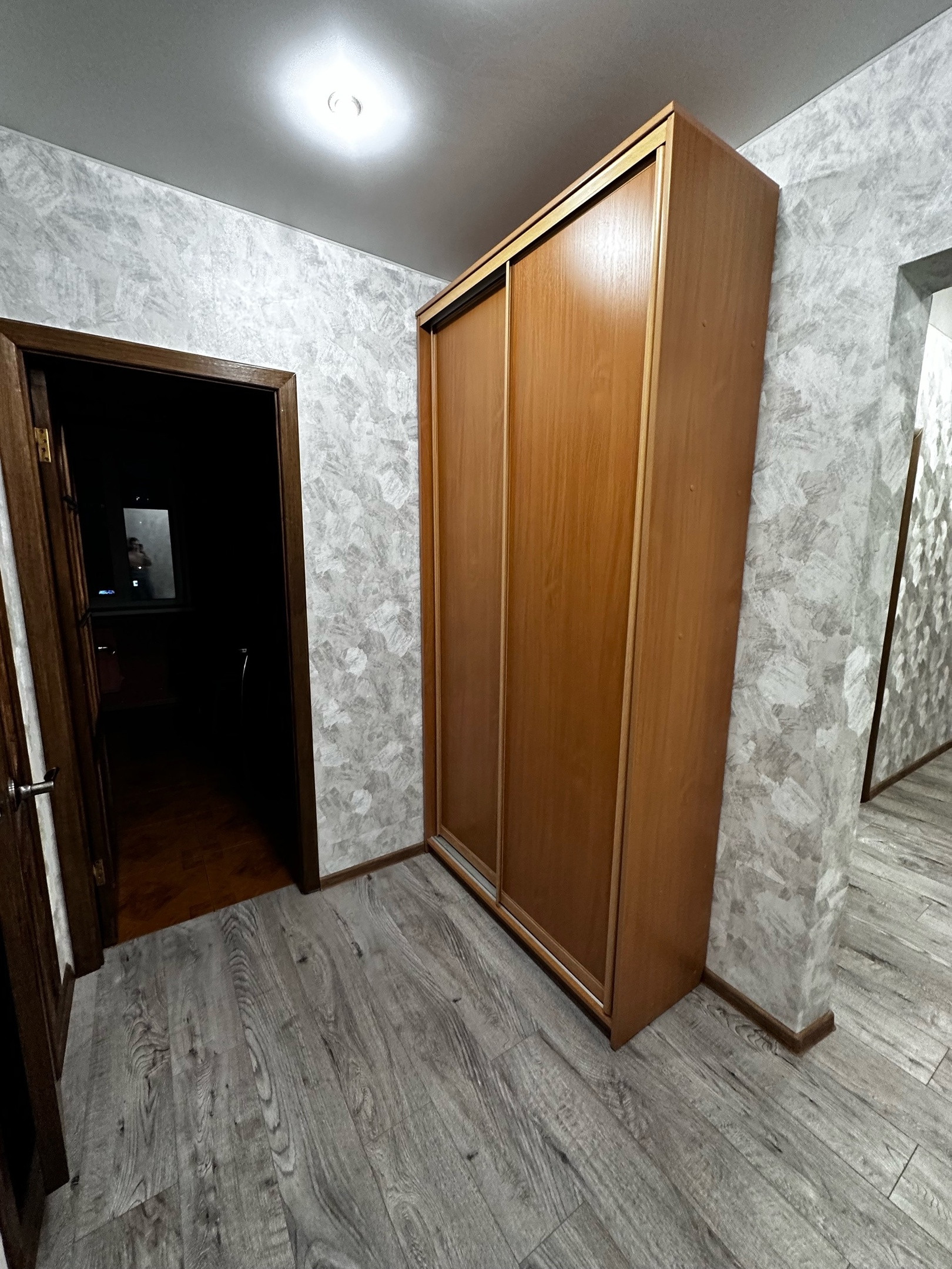 В квартире остаются шкафы, прихожая новая, кухонный гарнитур.