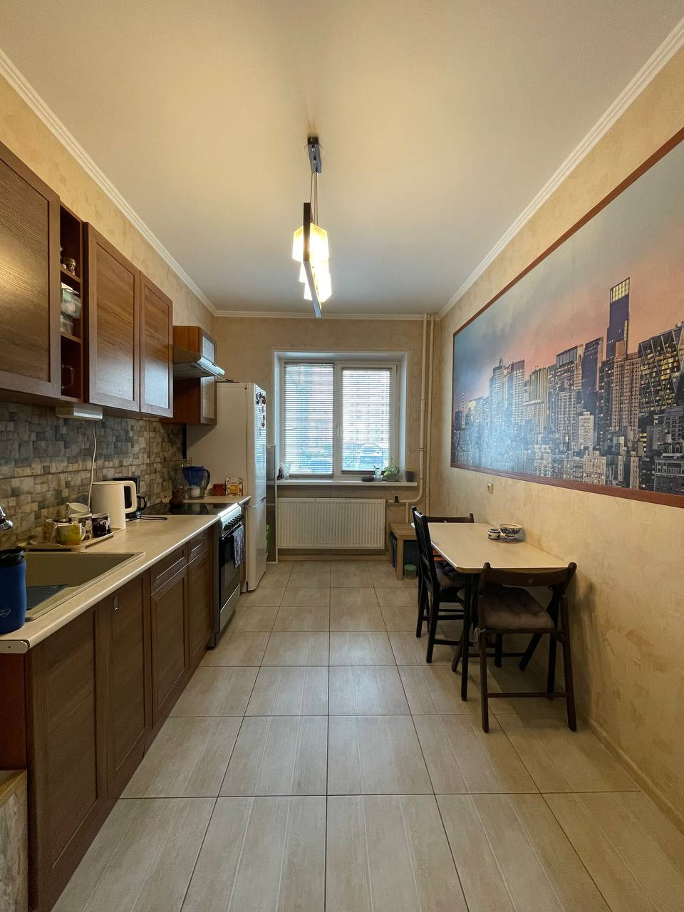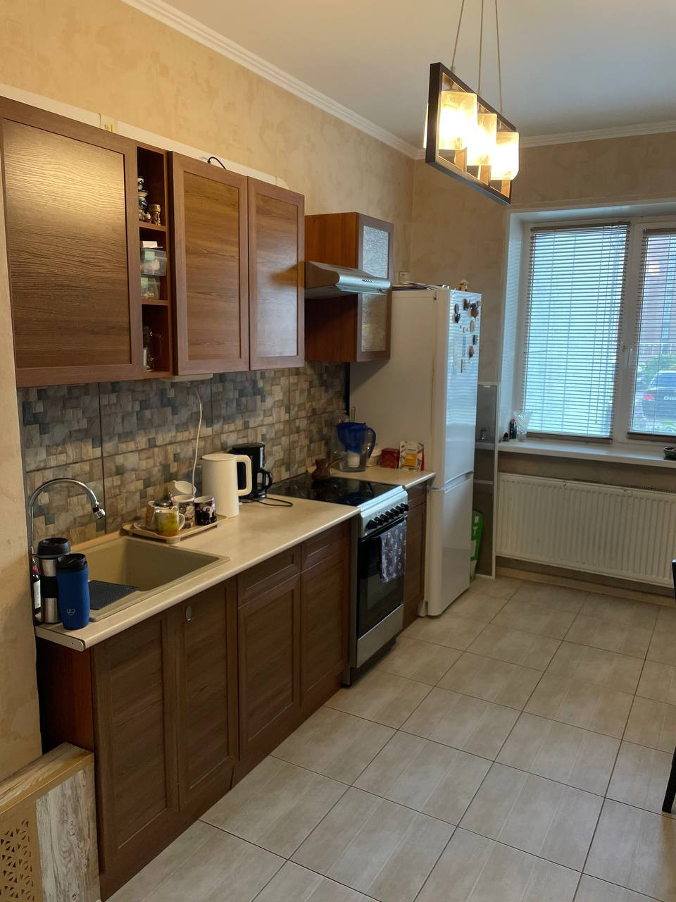 Квартира с ремонтом, вся электрика медная , полы в плитке, ламинат . Высокие потолки.