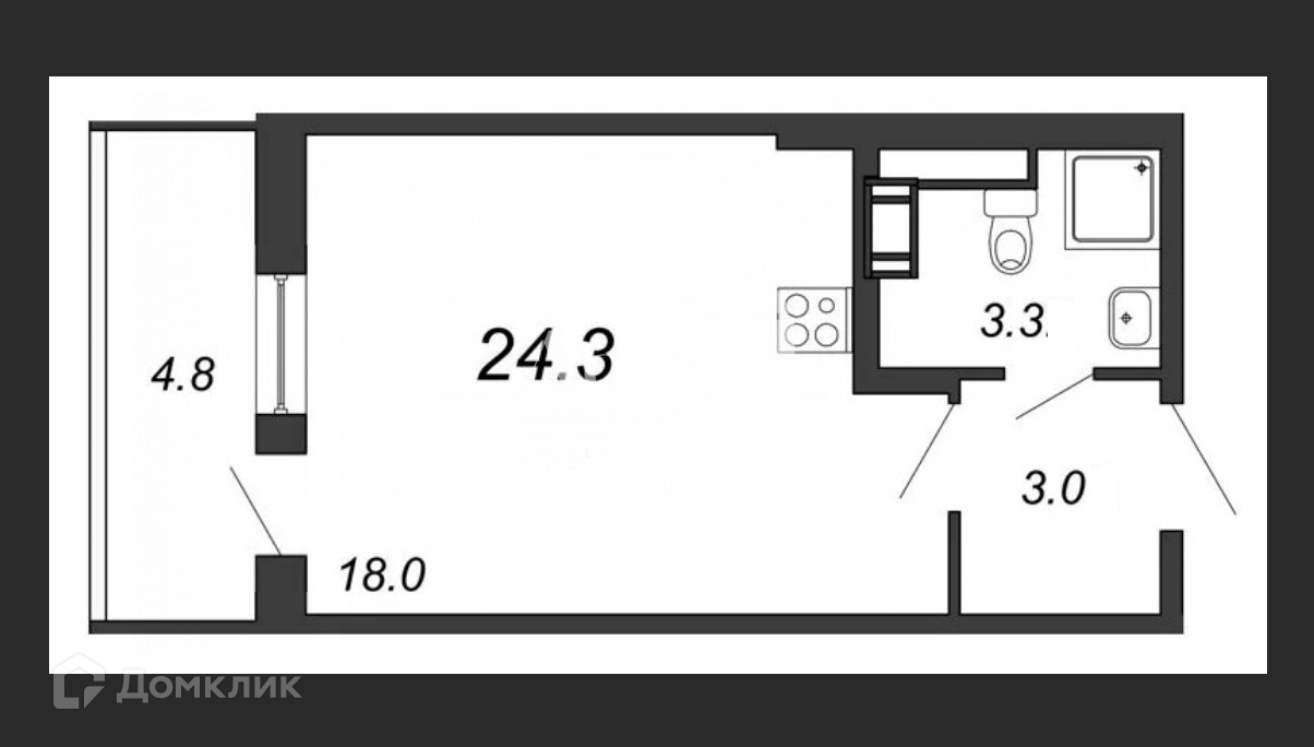 Квартира студия, 25 м2, этаж 3 / 4, на продажу в Санкт-Петербурге, проспект Ветеранов, 194