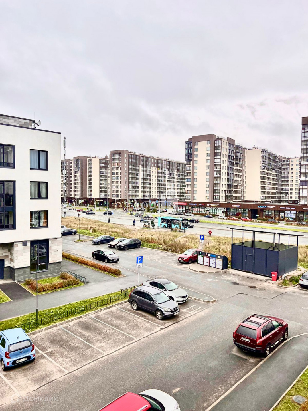 множество сетевых супермаркетов, аптеки, фитнес центр, детский развлекательный центр, пекарни, магазины различных товаров, школа, детский сад, остановка автобуса. До метро проспект Ветеранов 10-15 минут на транспорте.