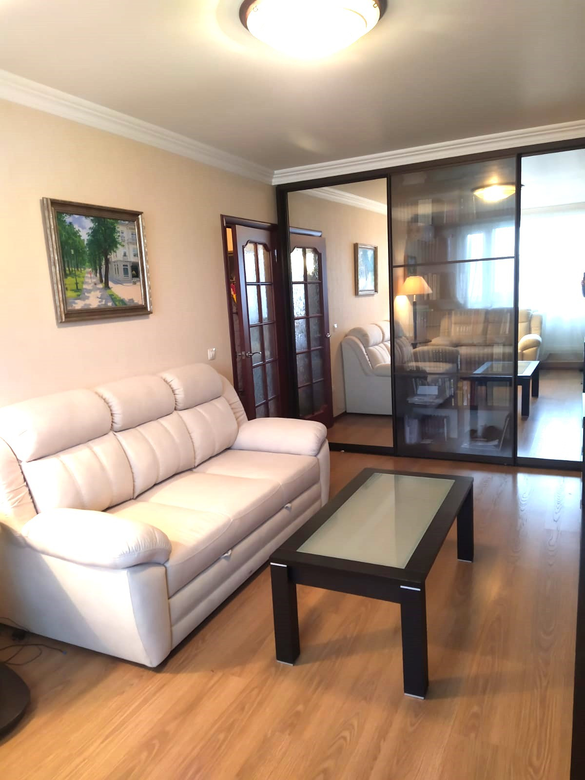 В комнате огромный трехстворчатый шкаф-купе.