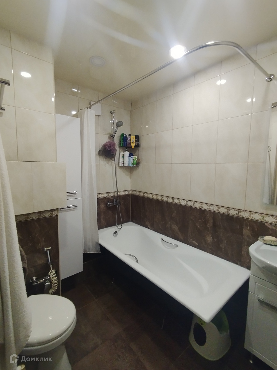 Ванная комната отделана дорогим качественным материалом