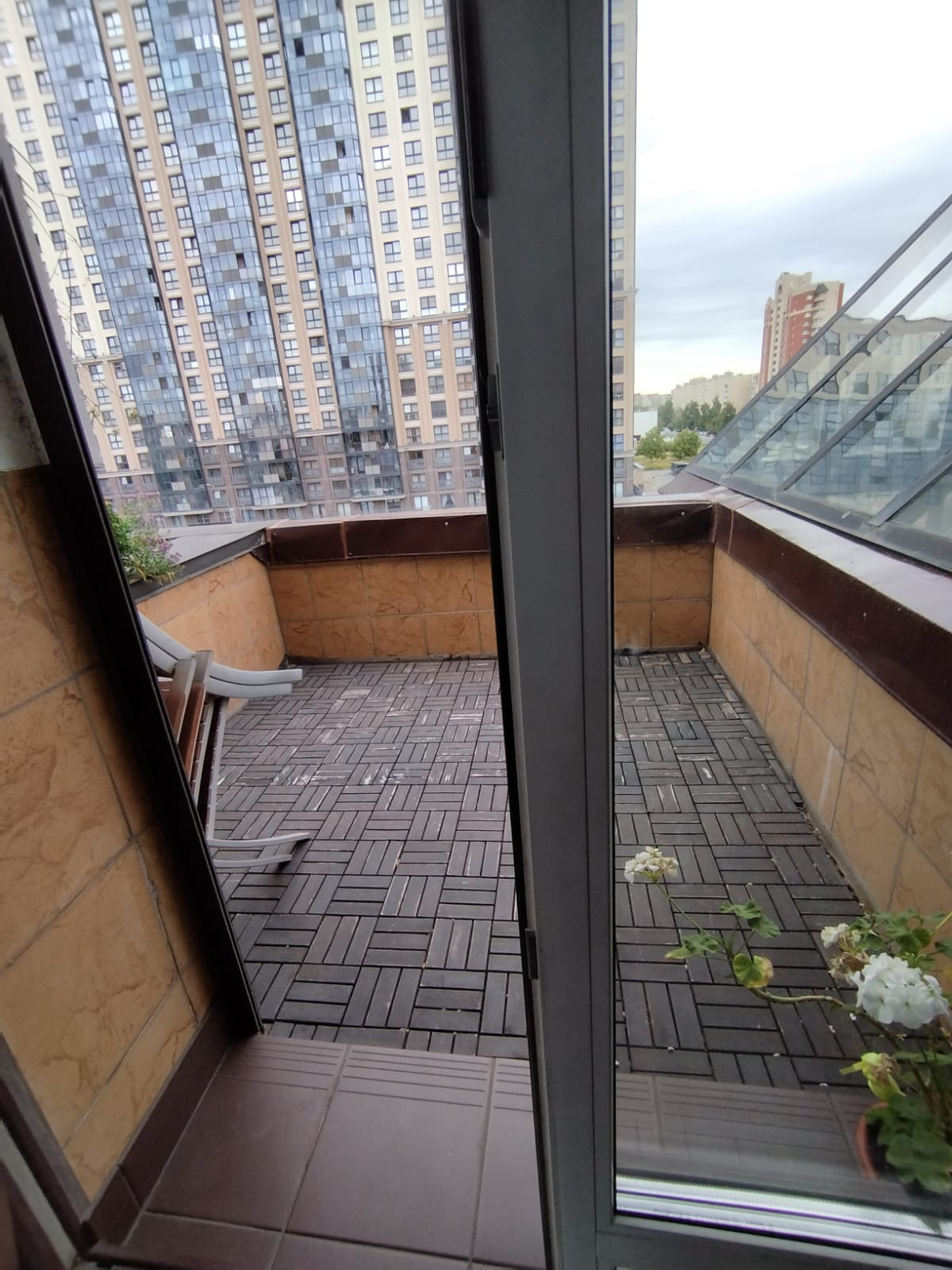 Квартира общей площадью 64 м.кв. имеет комфортную планировку: три изолированные комнаты 16.7+10.8+8.1, просторную кухню 13 м.кв., два санузла и две террасы 7 м.кв. и 13 м.кв, и расположена на 4 и 5 этаже дома. На первом уровне квартиры находится уютная гостиная, кухня, гостевой санузел и терраса с панорамным остеклением, что визуально увеличивает пространство, на втором этаже - две спальни, санузел и открытая терраса. Высота потолков 2.8 метра.