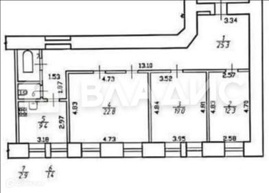 + В квартире достойная планировка: кухня правильной формы 9.4 м2, три несмежные спальни - 22.8м2, 19м2, 12.3м2 (при желании можно сделать 4 комнаты), раздельный санузел, длинный коридор.