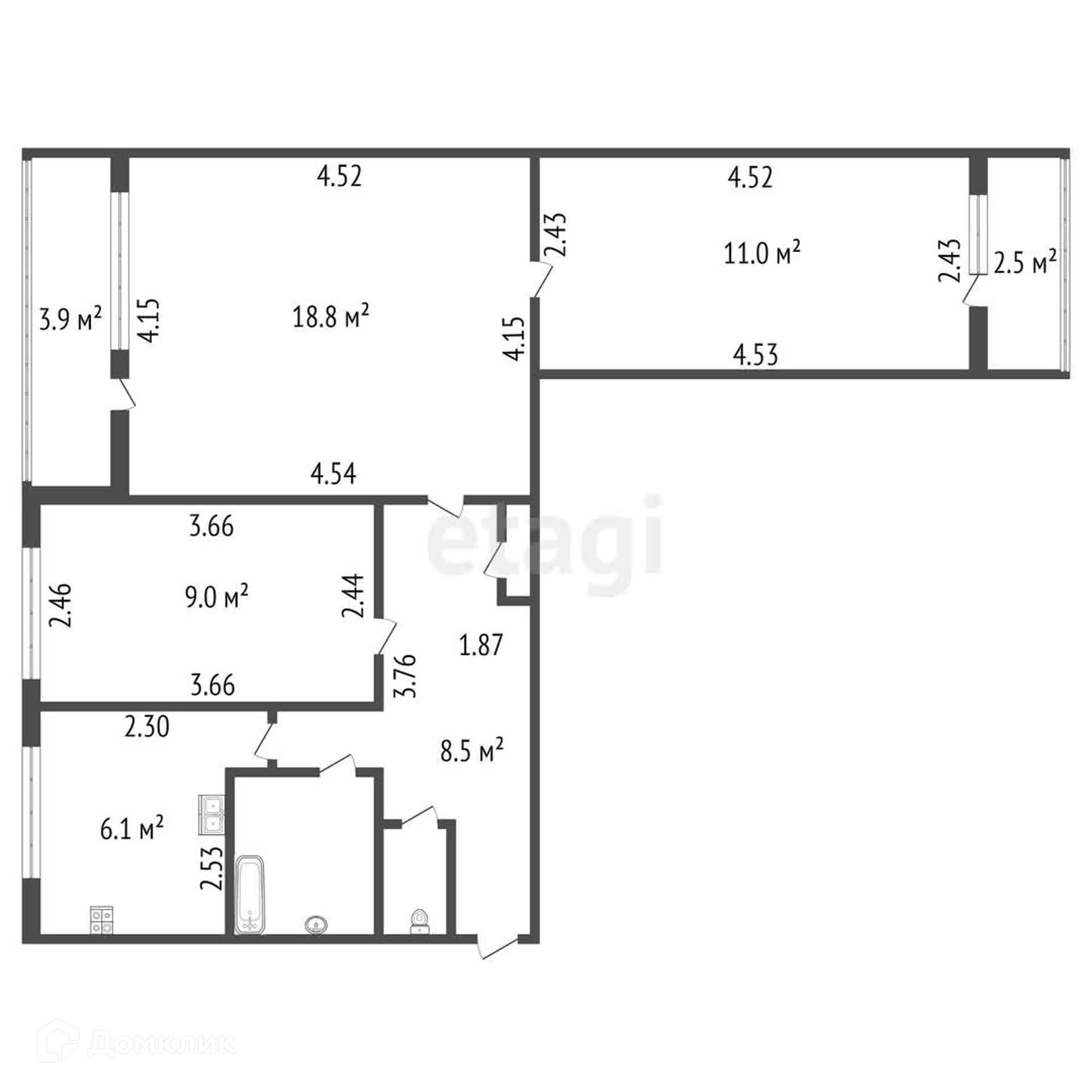 Общая площадь 56.7 м2