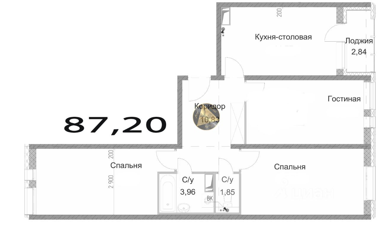 - Общая площадь квартиры 87,20 м2.