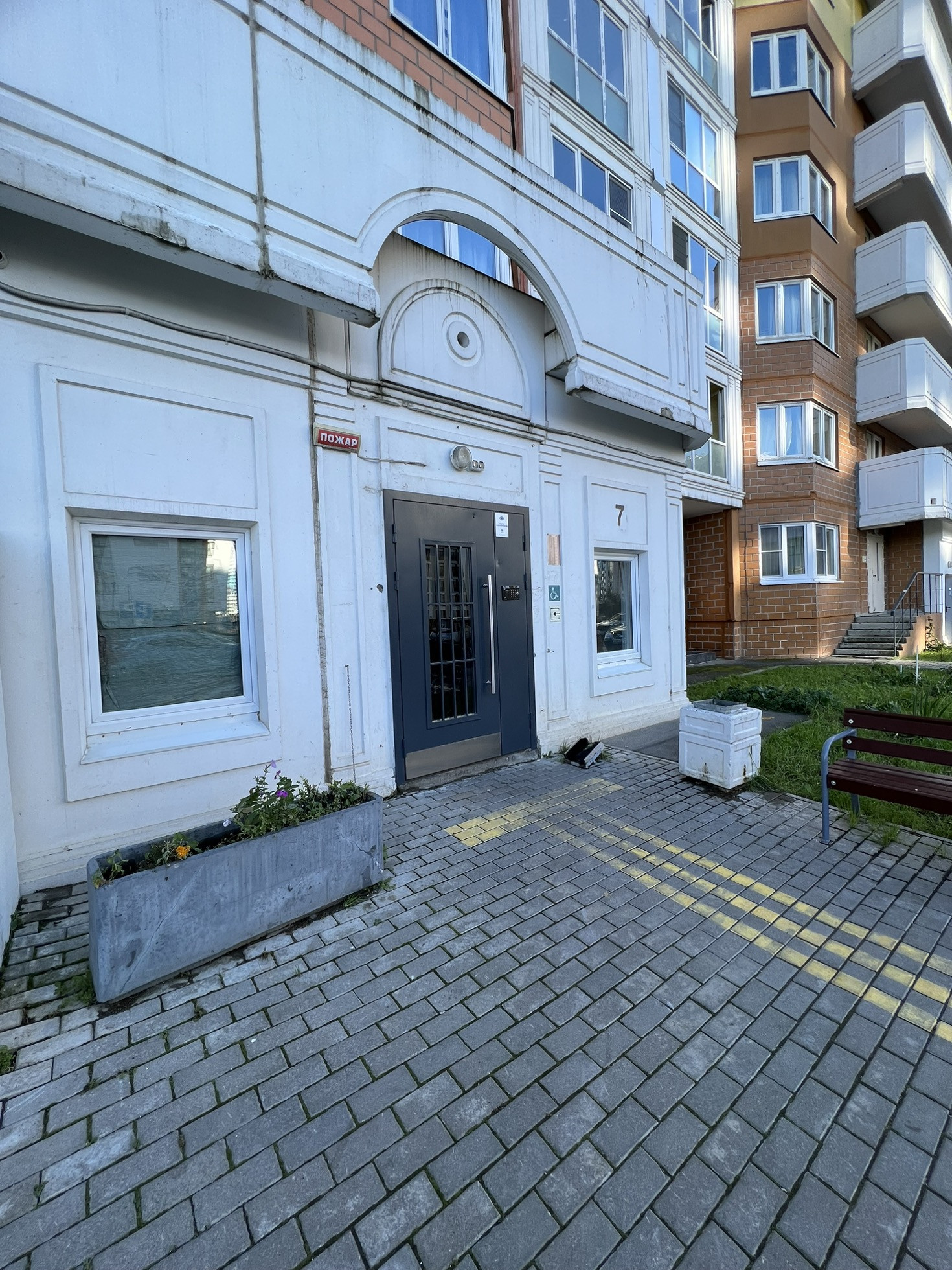 Парадная после ремонта, квартирный холл закрывается на ключ, есть колясочная. По периметру дома камеры!