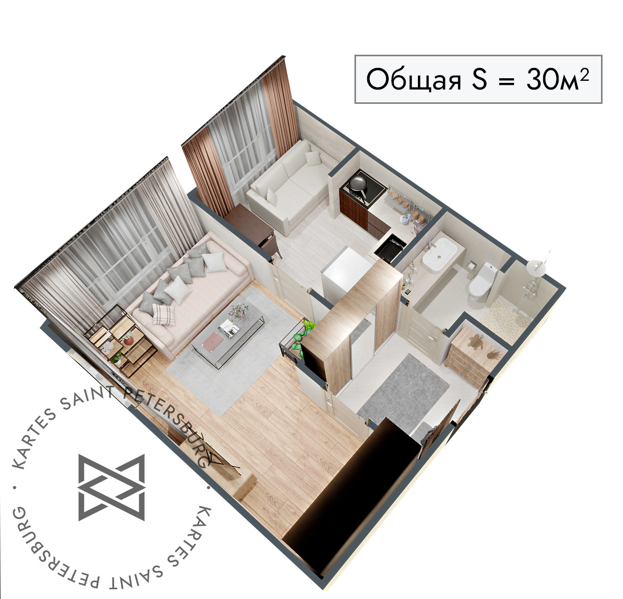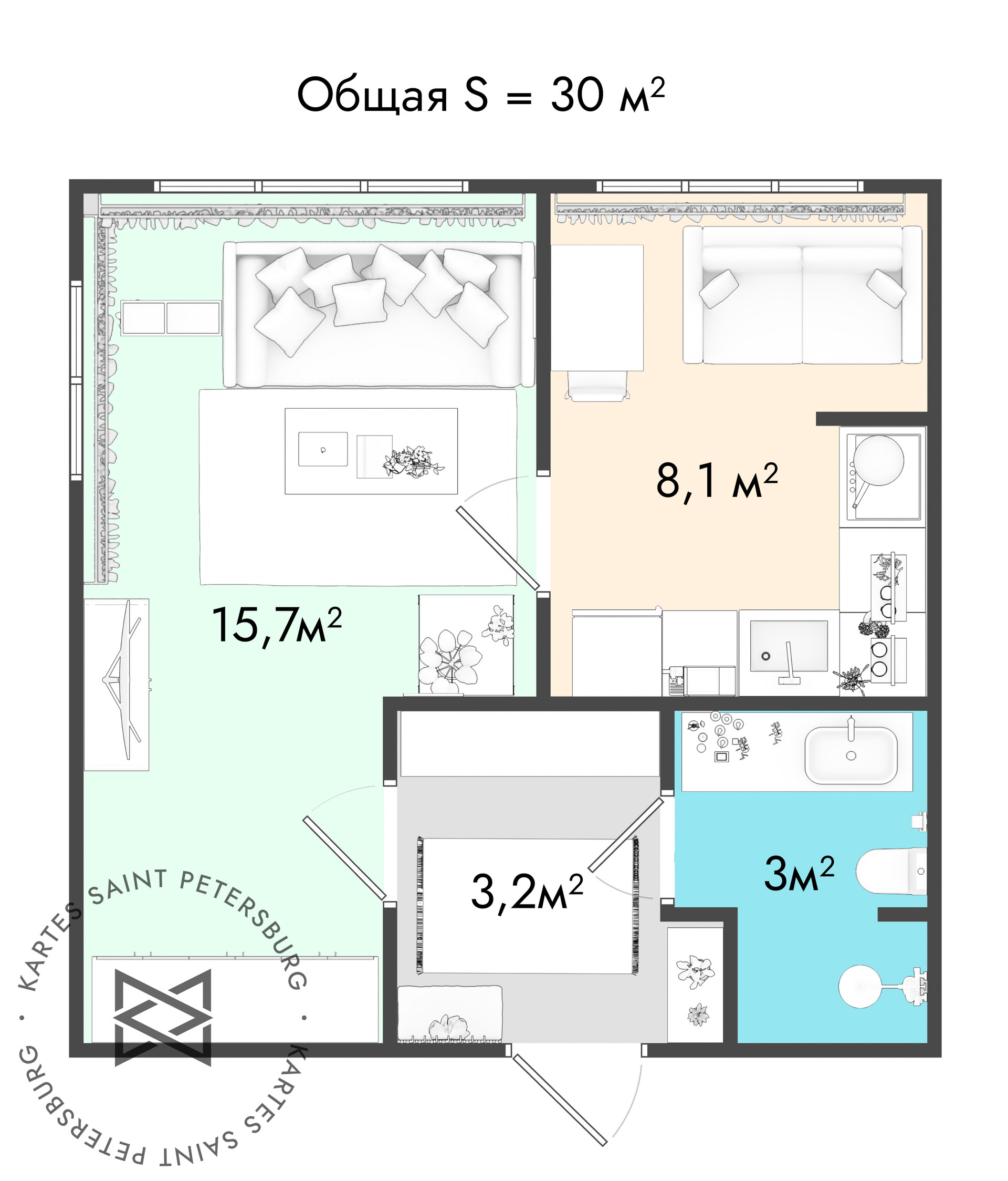 Общая площадь 30 м2
