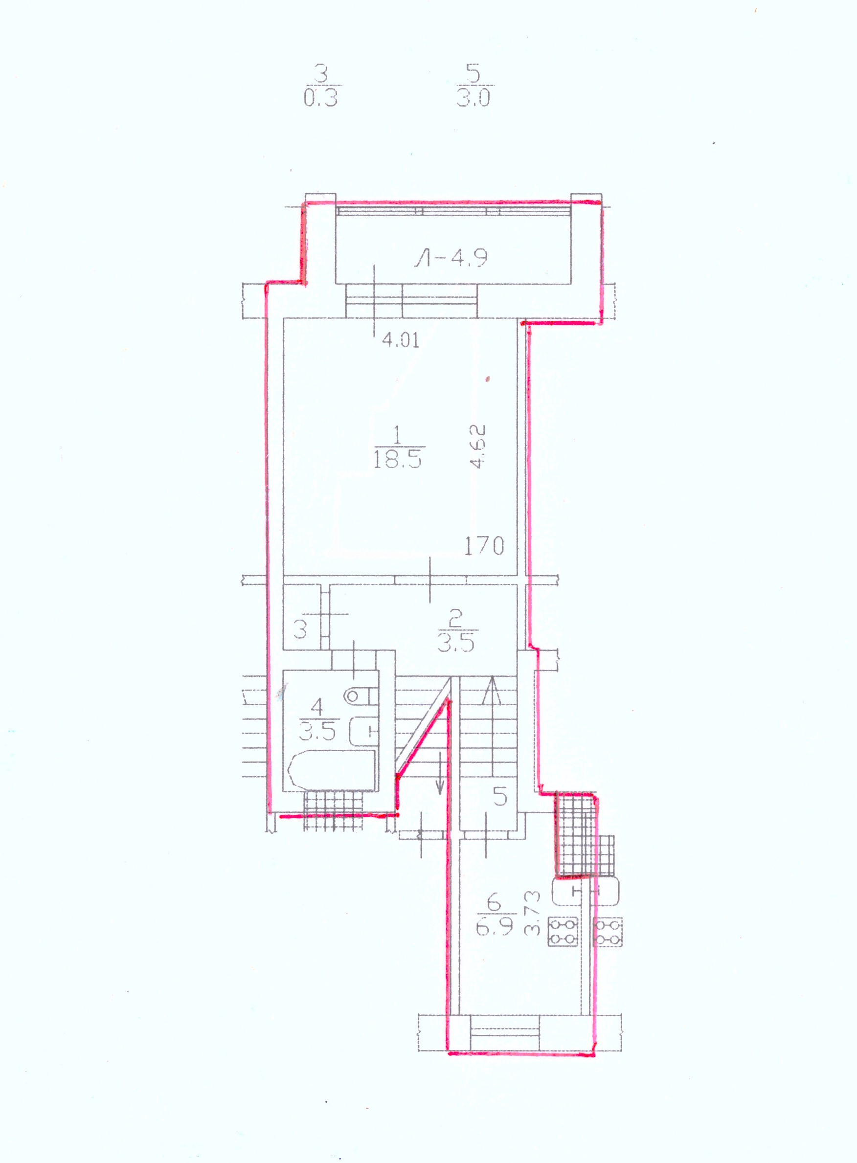 Балкон, лоджия 1 балкон