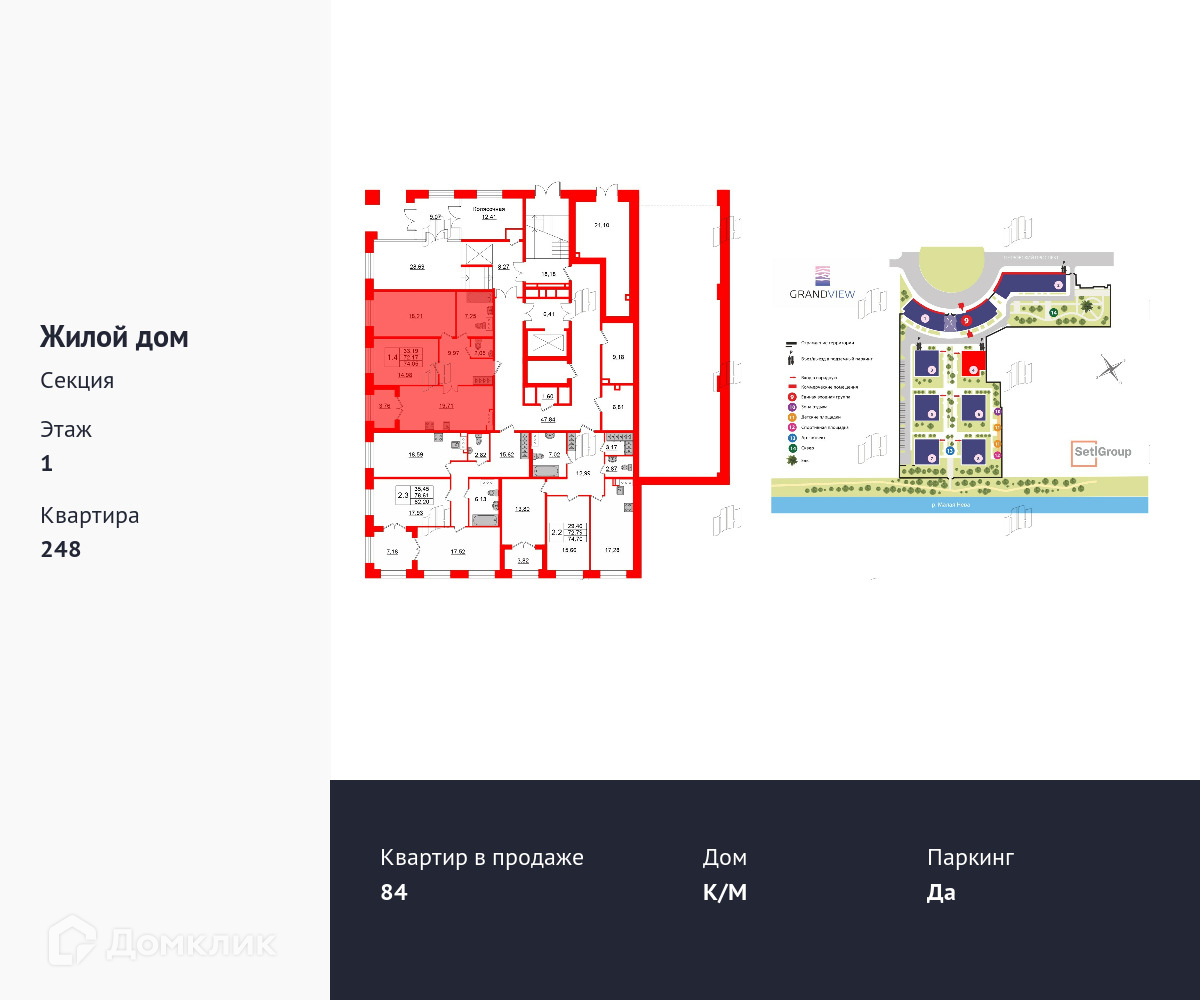 2-комнатная квартира, 72.4 м2, этаж 1 / 8, на продажу в Санкт-Петербурге, Петровский проспект, 28к2