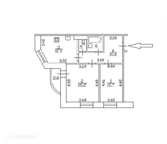 Общая площадь 54.1 м2