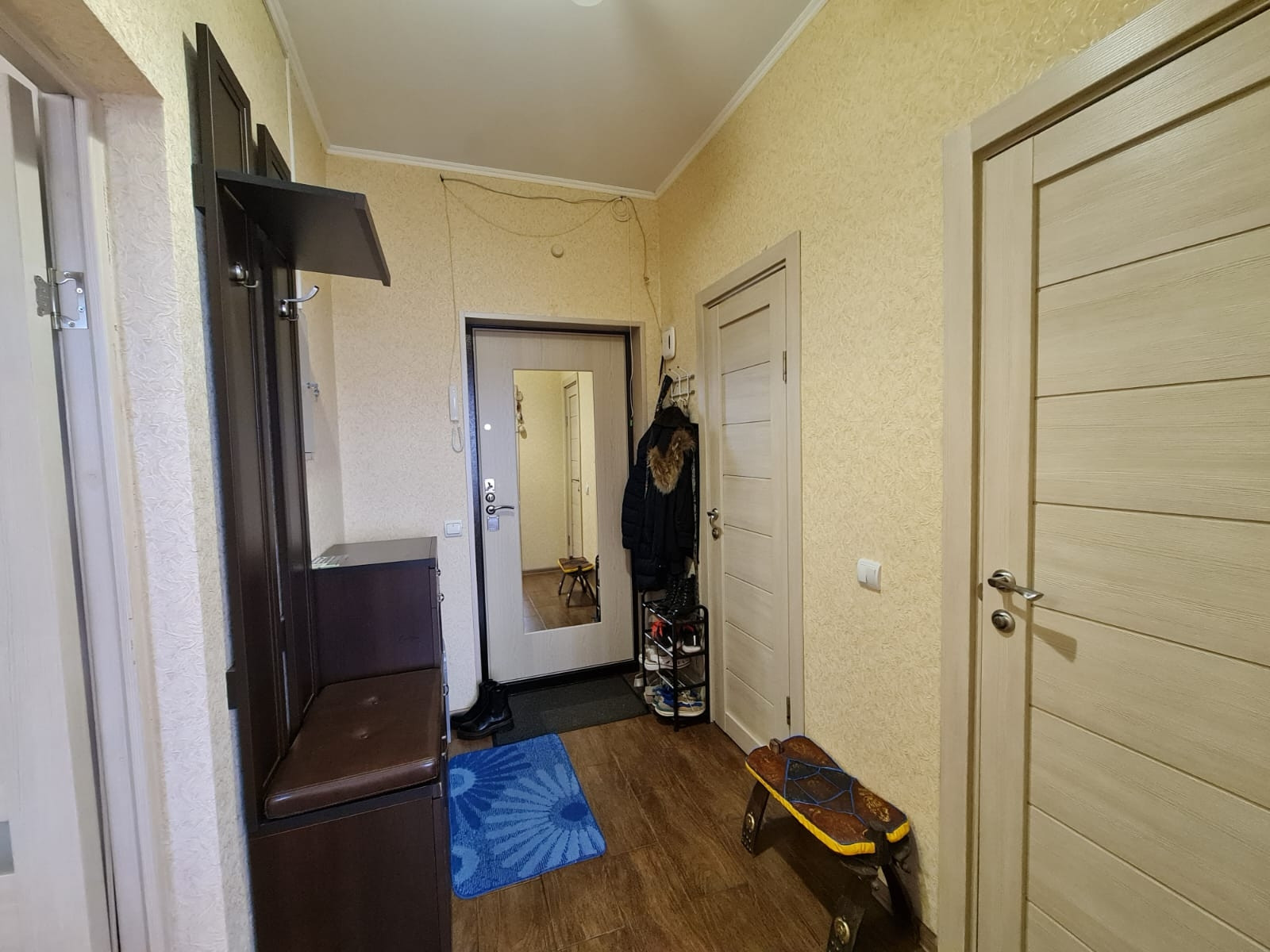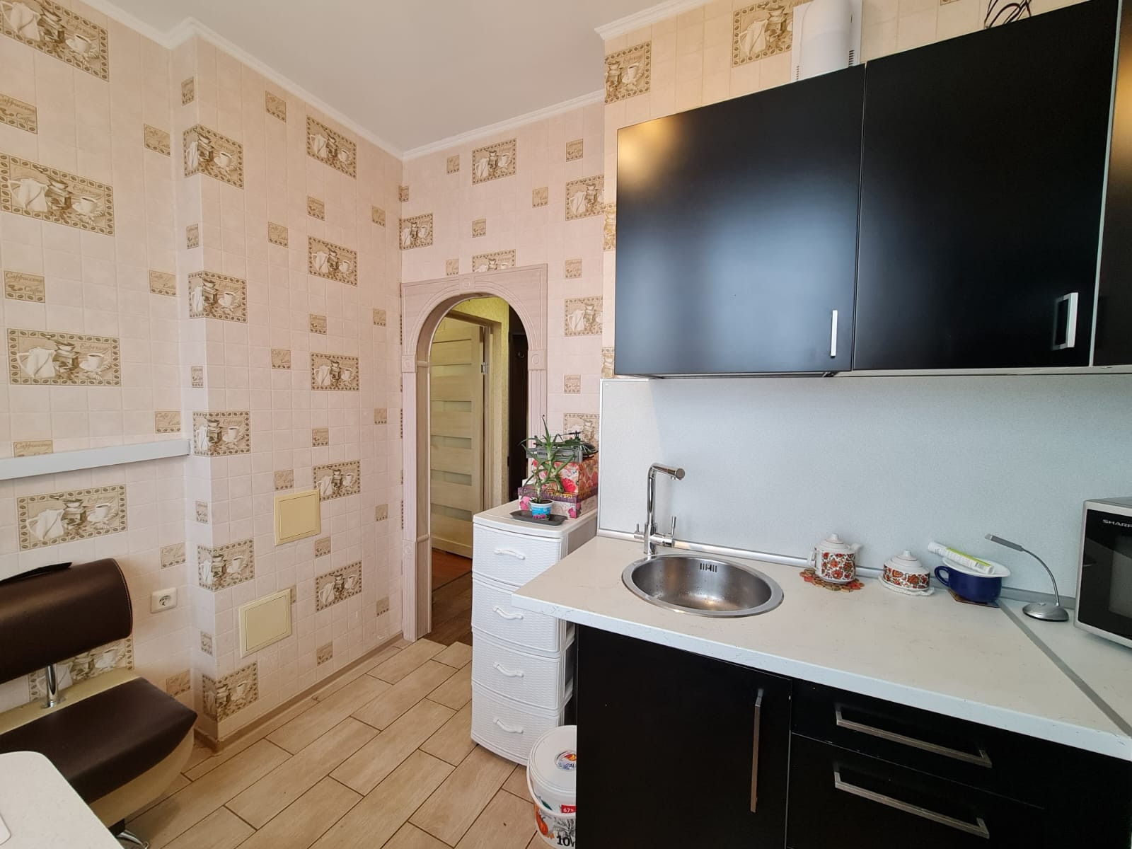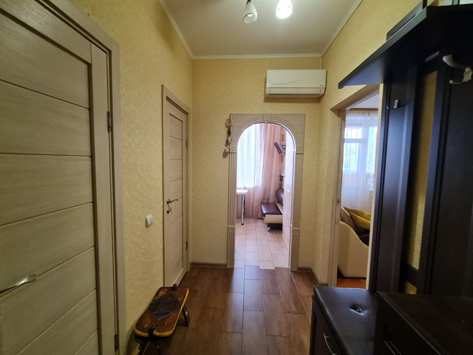 Уютная квартира 34 кв.м с ремонтом. Вся мебель остается новым владельцам! Светлая вместительная кухня оснащена всем необходимым.  Холодильник,  варочная панель, духовой шкаф, микроволновая печь, телевизор. В коридоре установлен кондиционер. Раздельный санузел. В ванной комнате стиральная машина и полотенцесушитель, подключенный к центральной системе. В спальне большой диван, вместительный шкаф и детский уголок. Из спальни выход на остекленный балкон. Заезжай и живи! Ничего делать не нужно!