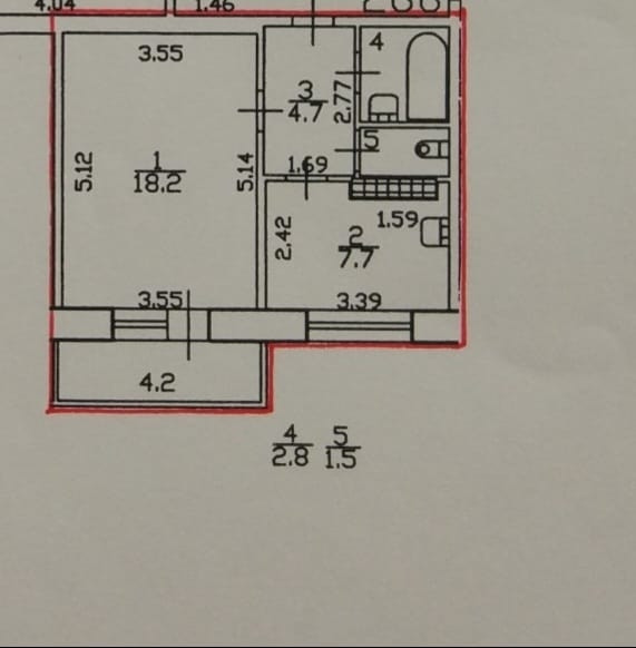 Жилая площадь 18.2 м2