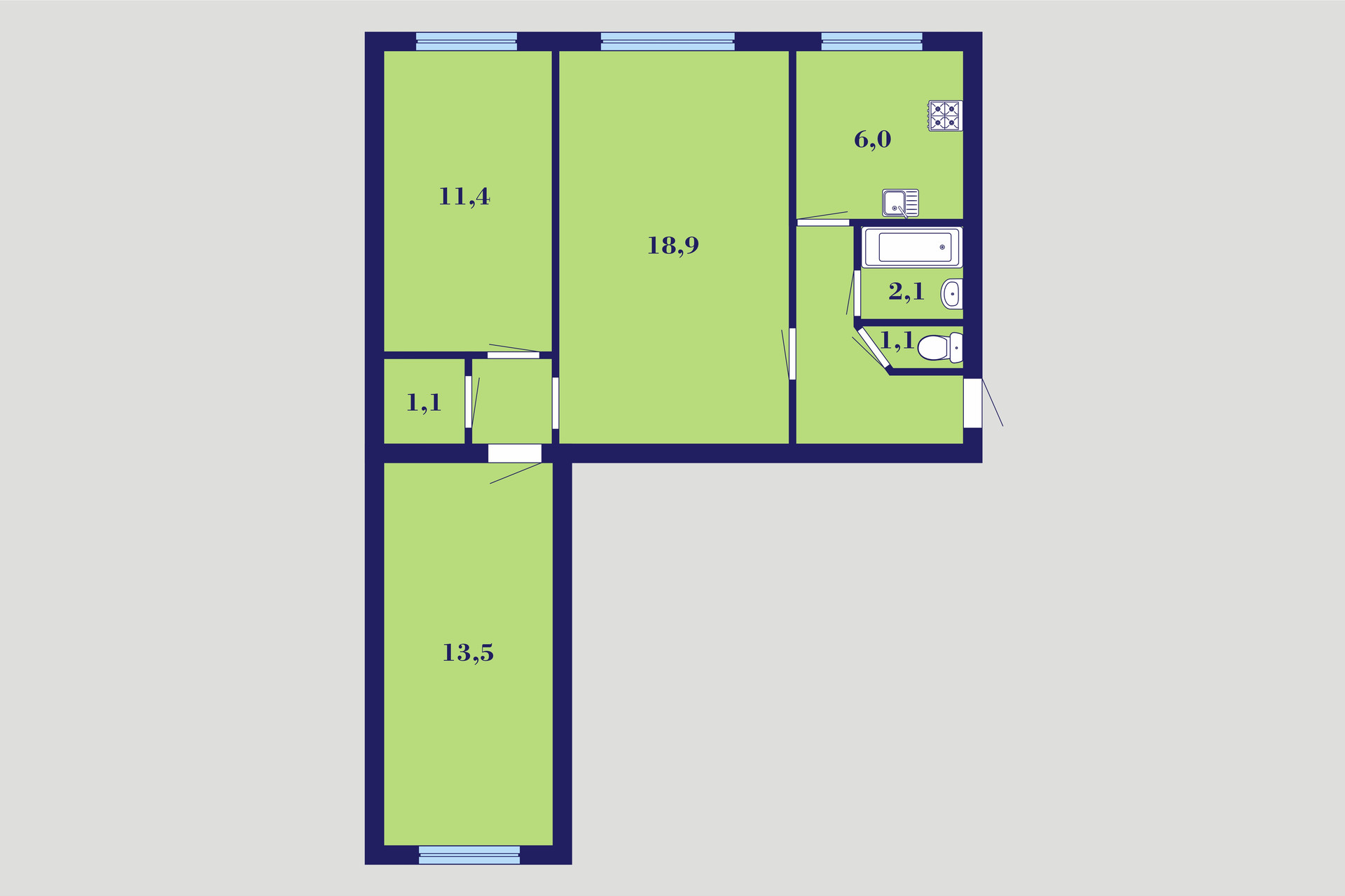 Общая площадь 58.7 м2