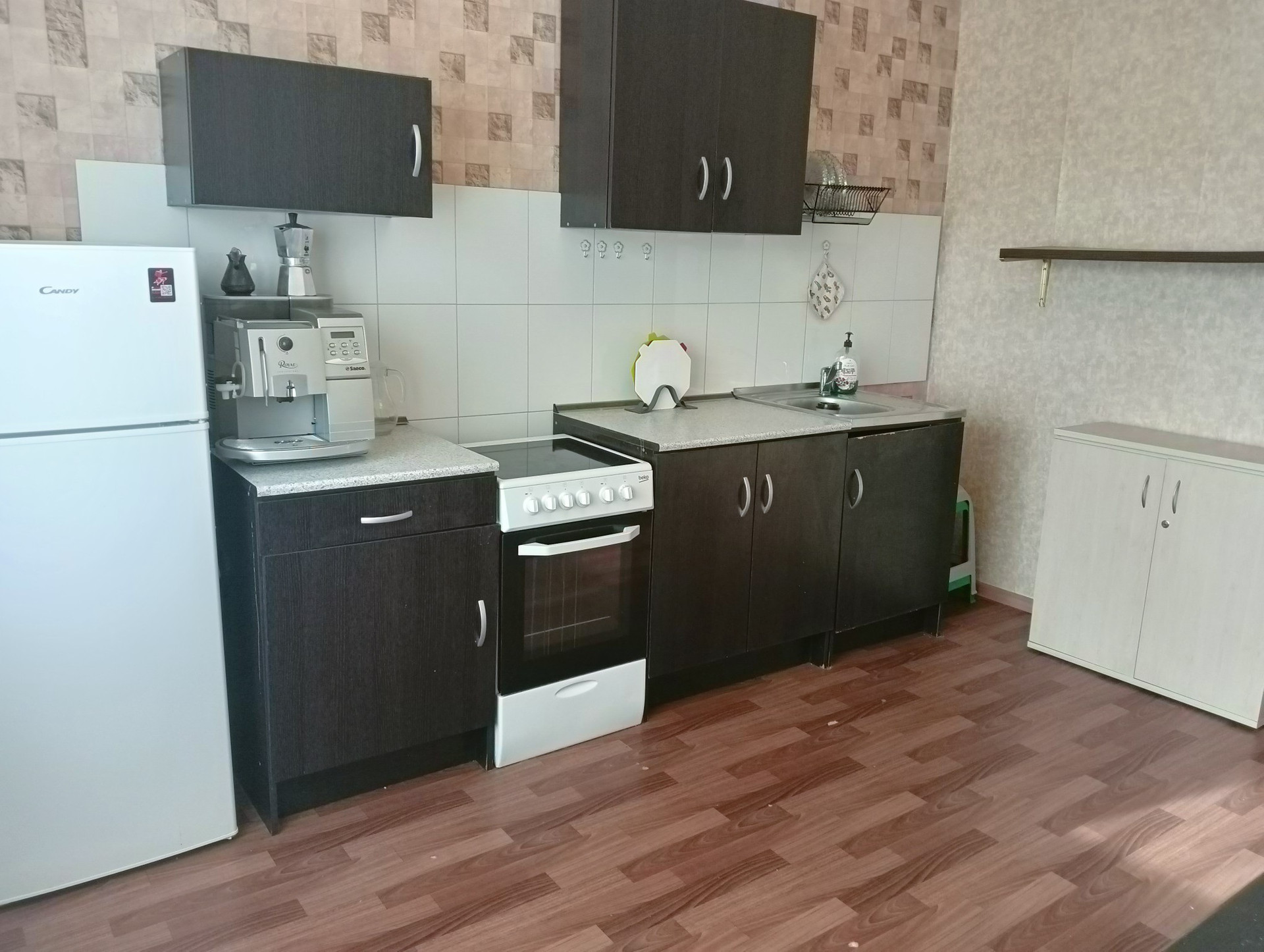 Ремонт от застройщика, устаревший, требует обновления.