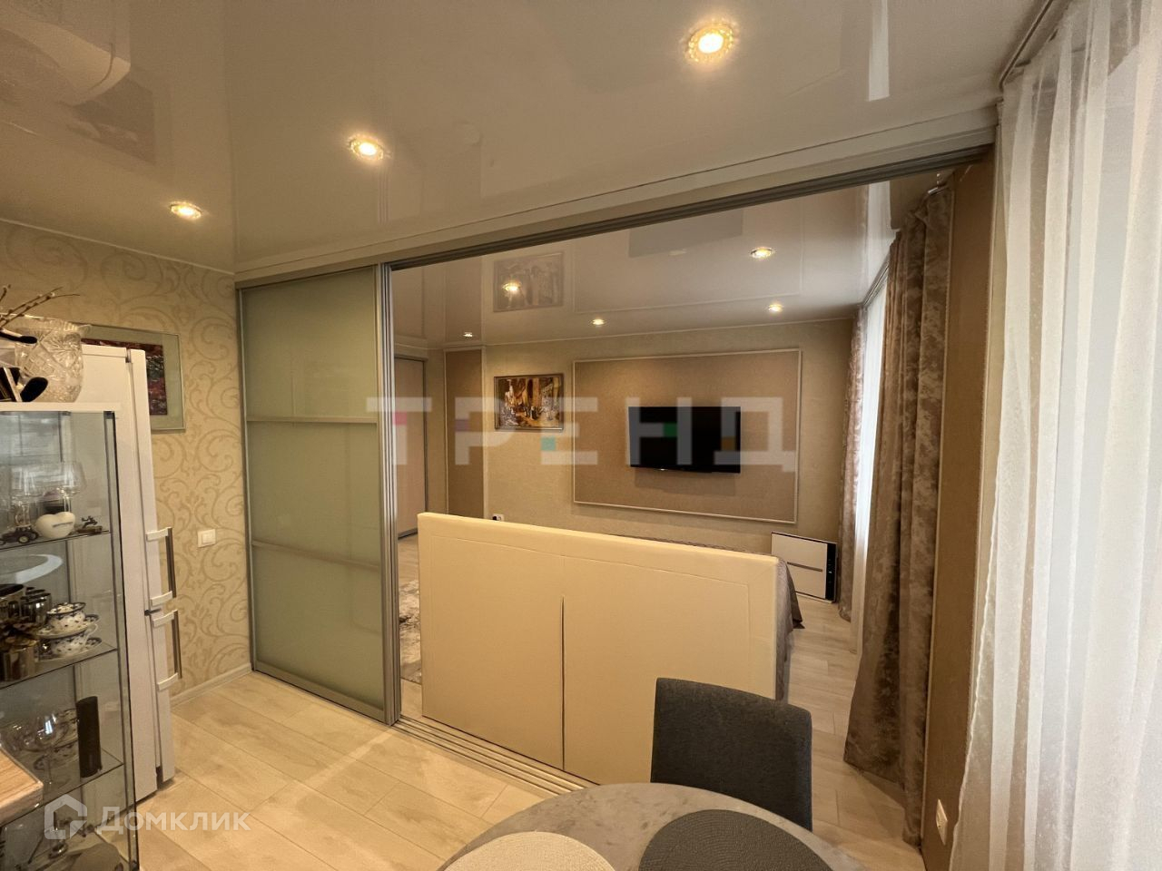 В квартире выполнено зонирование кухонной и жилой площади с помощью системы перегородок, что позволяет превратить однокомнатную квартиру в просторную студию. Солнышко стветит с утра и до часов 11. Квартира полностью готова к проживанию!