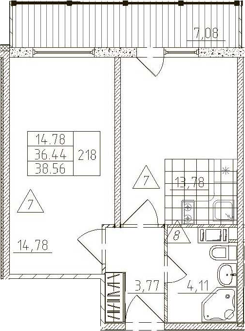 Общая площадь 36.44 м2