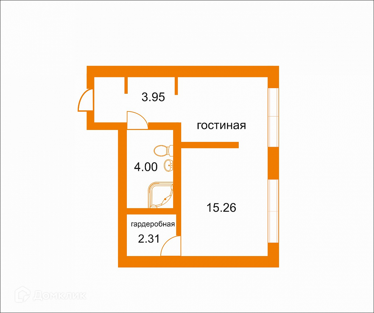 Общая площадь 25.5 м2