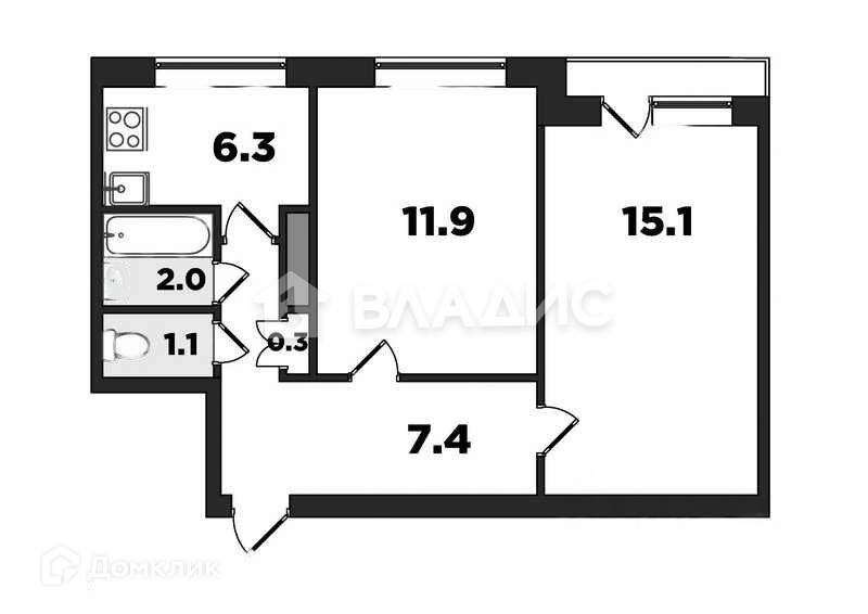 2-комнатная квартира, 45 м2, этаж 3 / 9, на продажу в Санкт-Петербурге, проспект Кузнецова, 26к1