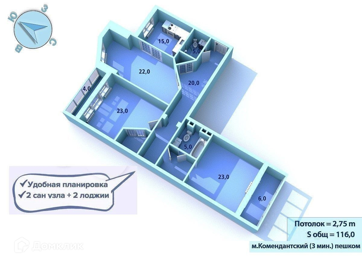 Арт. 57357422. Квартира в престижном Приморском районе г Санкт-Петербурга, дом в 500м от метро Комендантский проспект, удобная транспортная развязка, заезд с ЗСД!