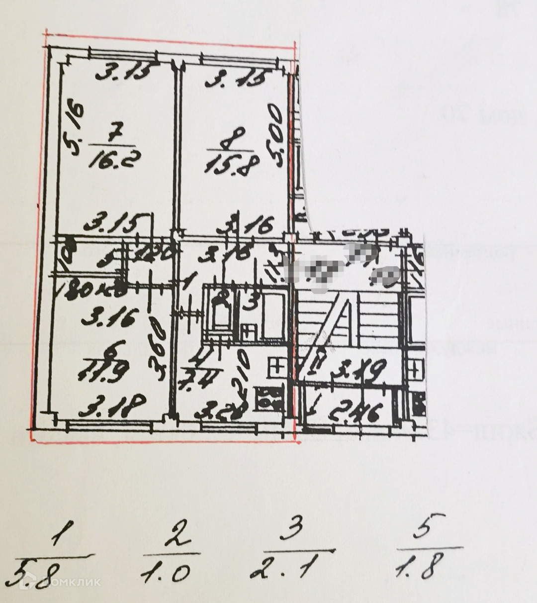 Жилая площадь 43.9 м2