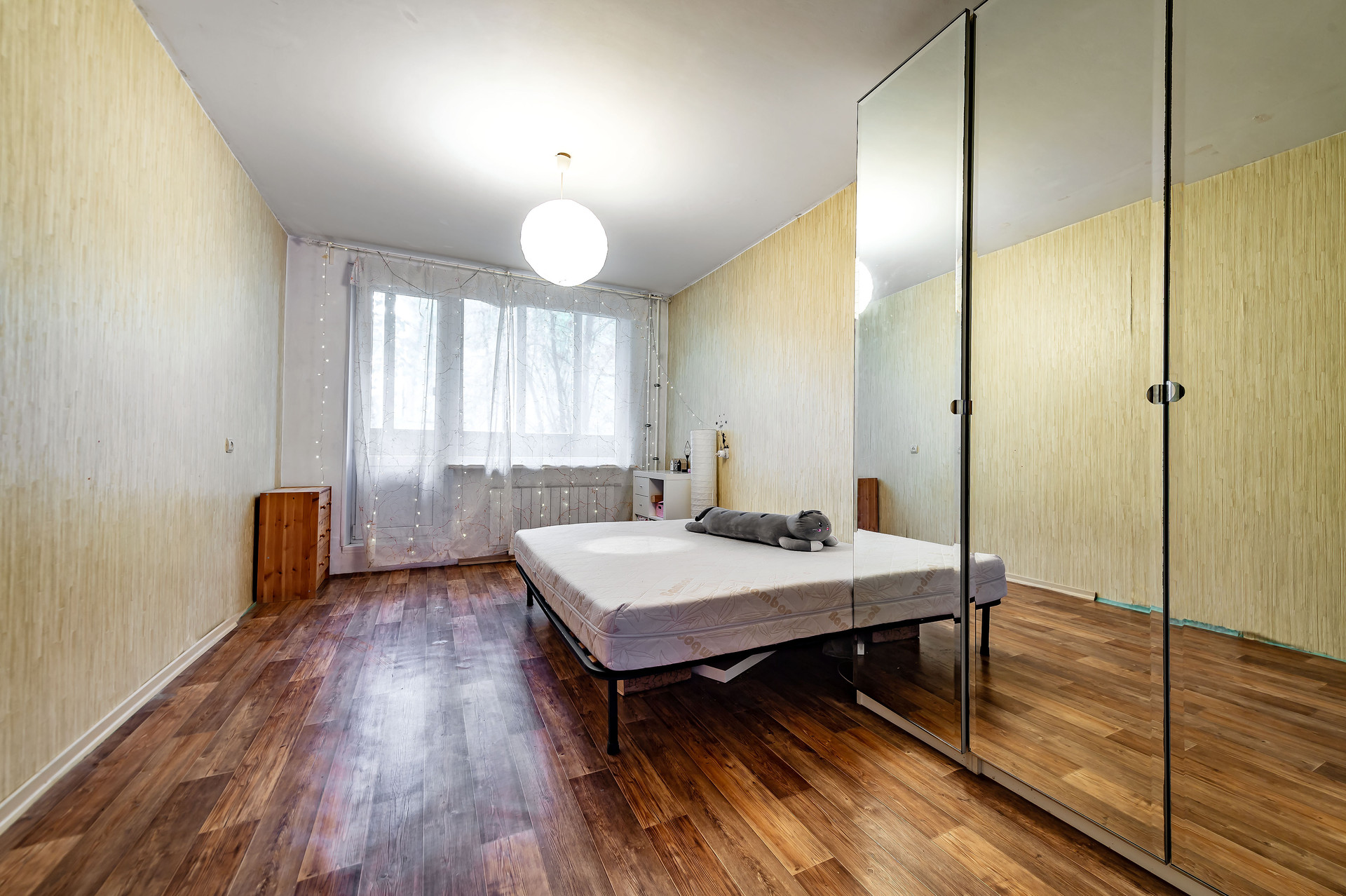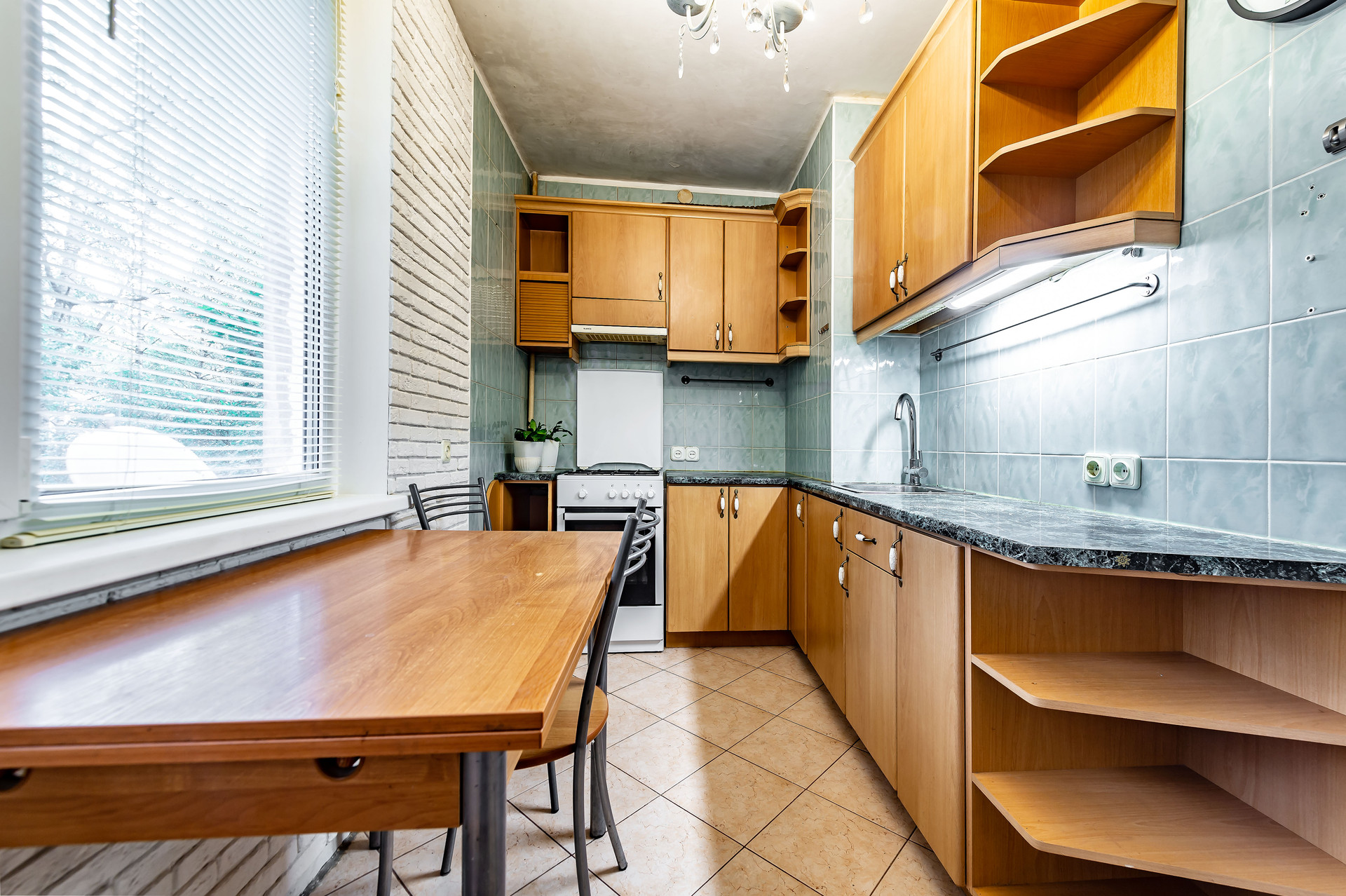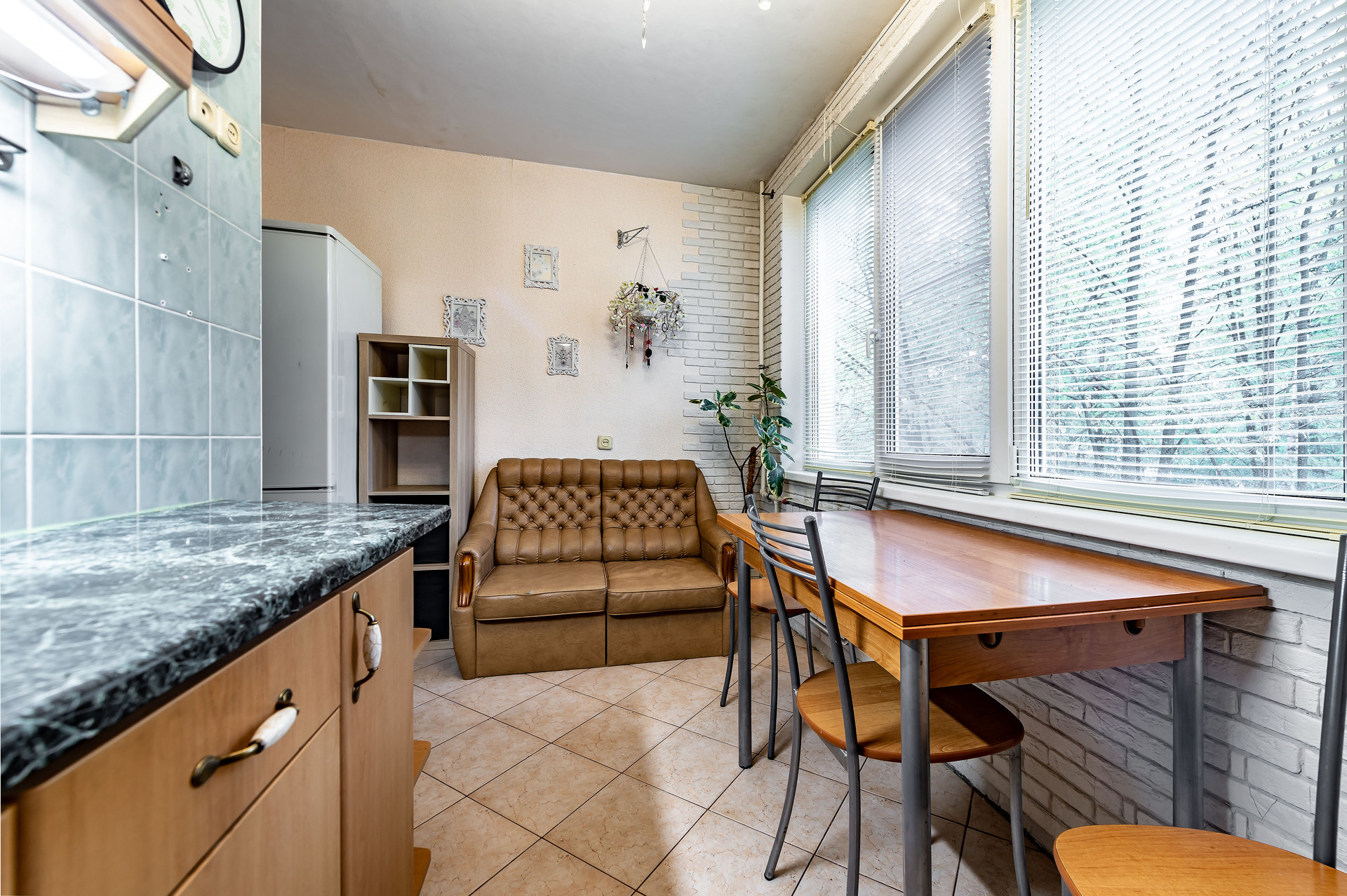 Новому собственнику остается встроенная кухня, холодильник, стиральная машина, карнизы, жалюзи, шторы.