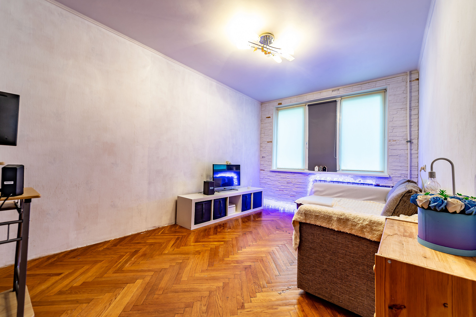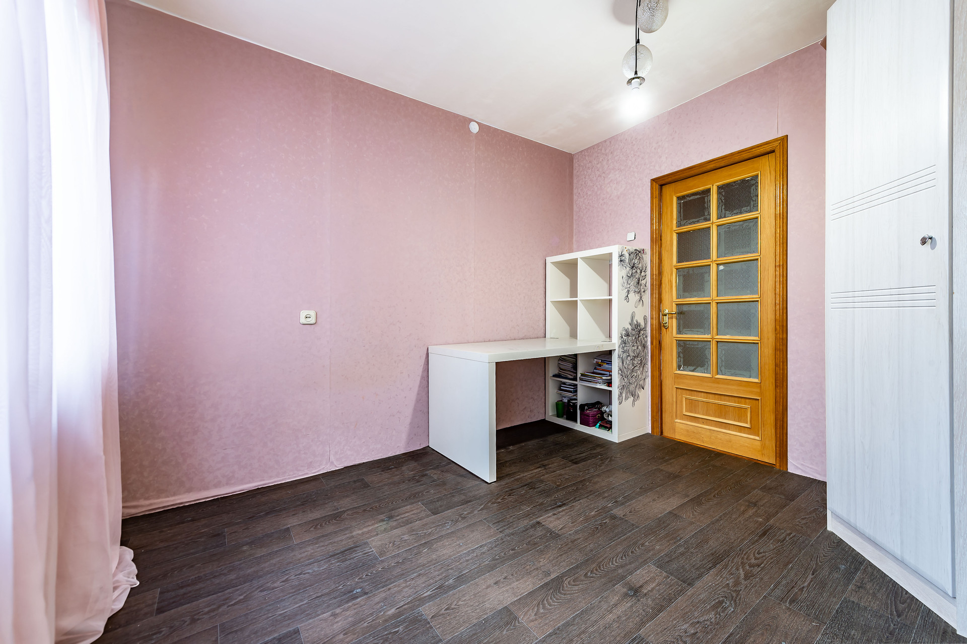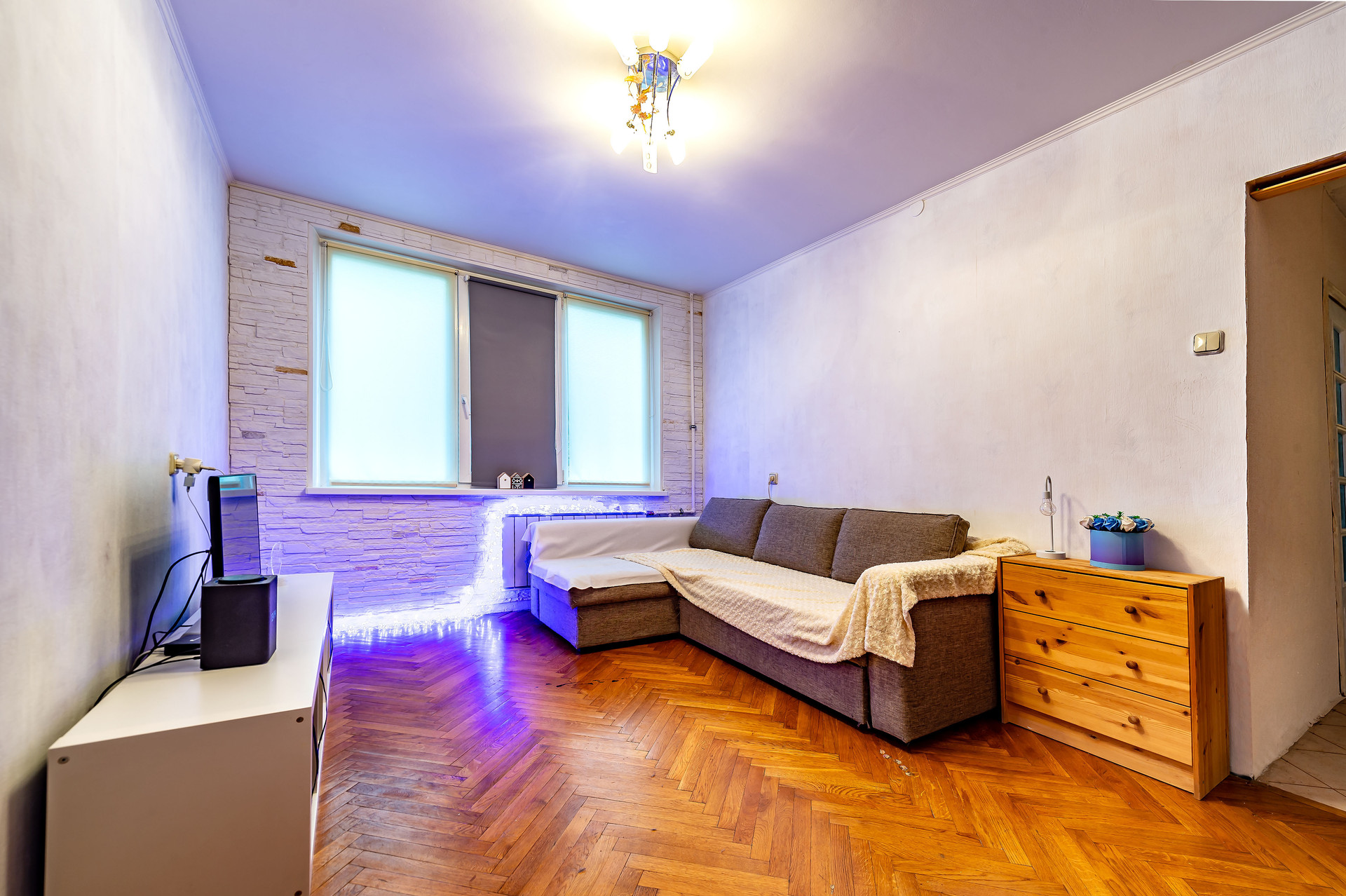 Новому собственнику остается встроенная кухня, холодильник, стиральная машина, карнизы, жалюзи, шторы.