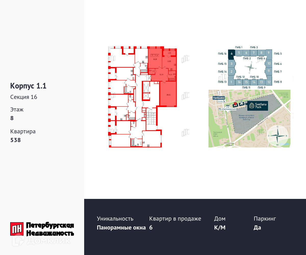 • 15 мин пешком до метро Удельная и 500 м до Парка Сосновка
