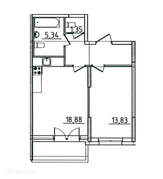 Площадь кухни 18.88 м2