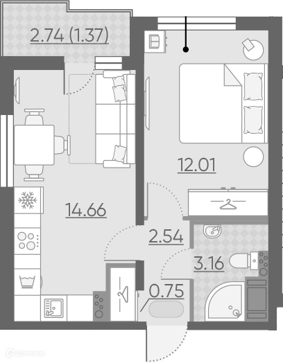 В продаже квартира в жилом комплексе «Ручьи».