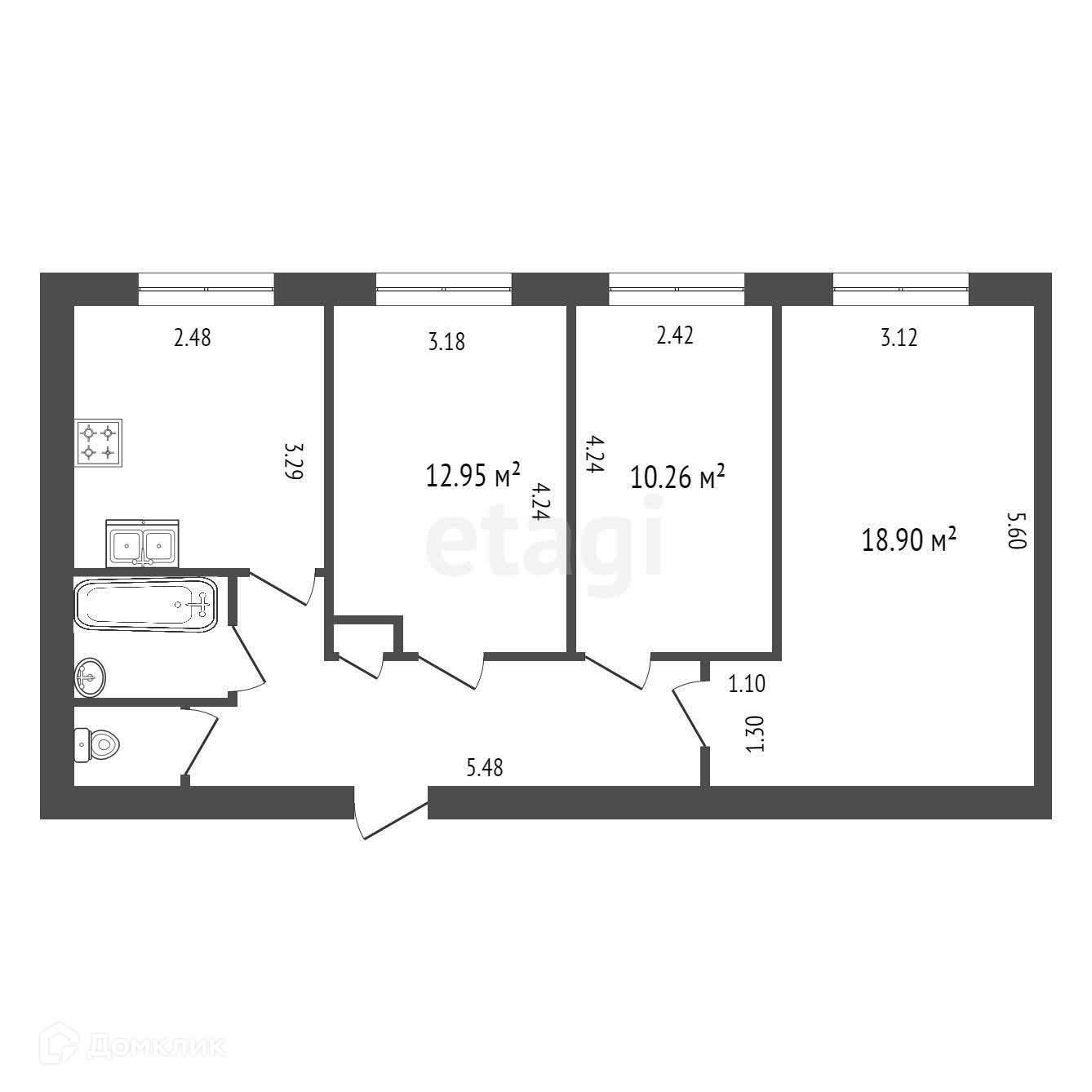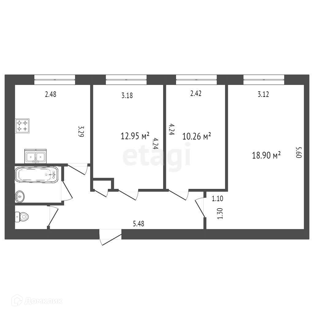 Общая площадь 62.1 м2
