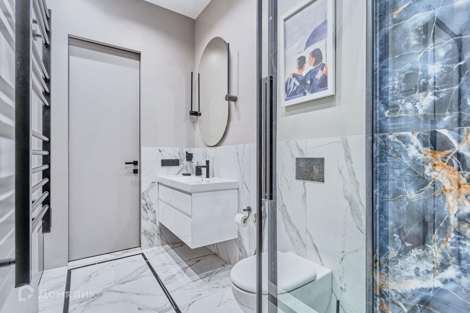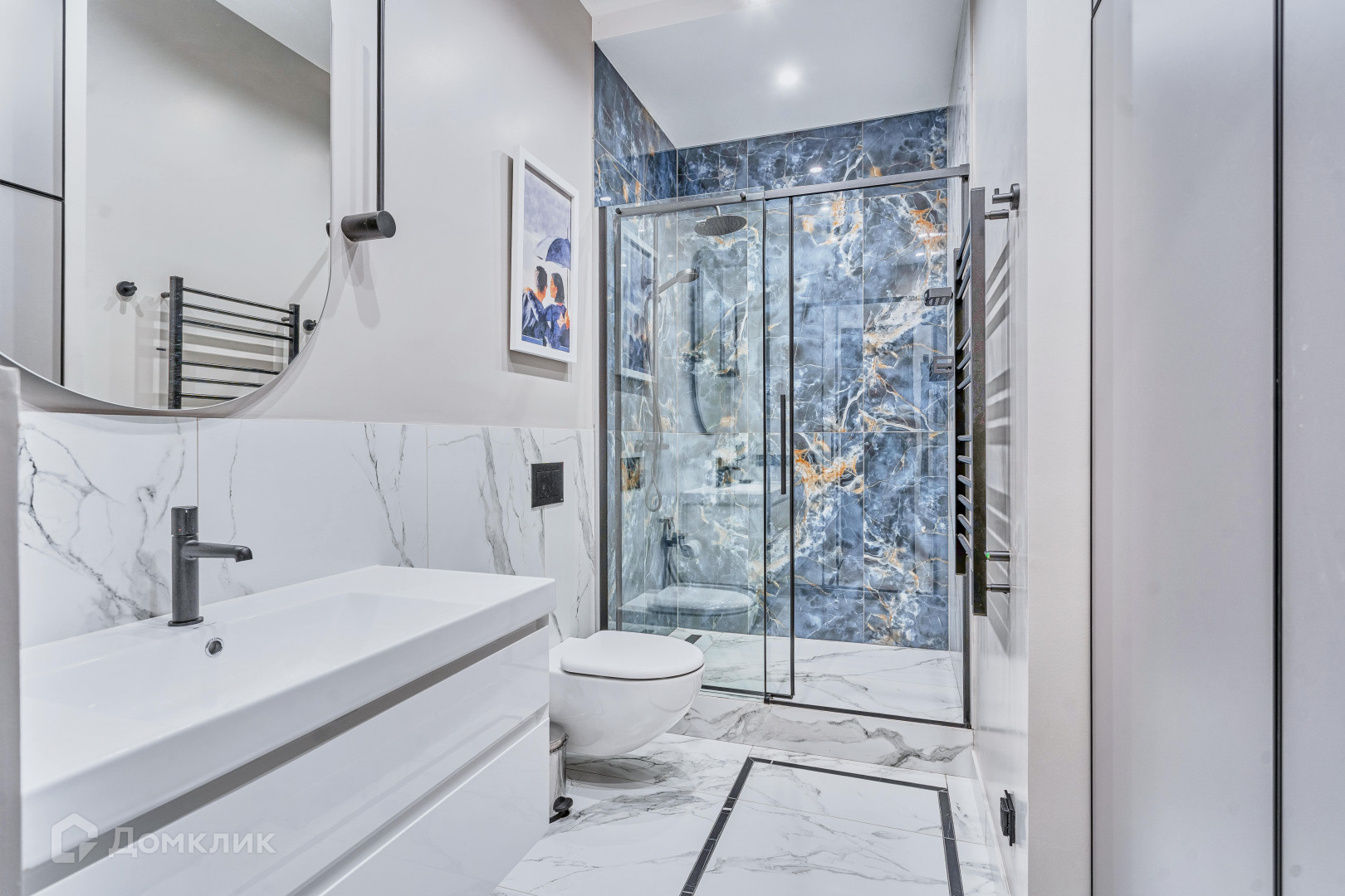Ремонт в стиле модерн  выполнен в сентябре 2022 года (последним в парадной) по ИНДИВИДУАЛЬНОМУ ДИЗАЙН-ПРОЕКТУ с использованием натурального камня(все поверхности в кухне и санузлах) и дерева. Напольное покрытие из массива дуба. Высота  дверей 2.3 метра. В отделке использованы дорогостоящие материалы и освещение элитных европейских брендов. Мебель изготовлена на заказ, а вся техника ведущих мировых брендов.  В шикарных  ванных комнатах сантехника   Villeroy & Boch, стиральная и сушильная машины Miele . Установлена система кондиционирования,очистки воздуха и воды . Вся  техника в квартире  премиум -бренда  Neff .