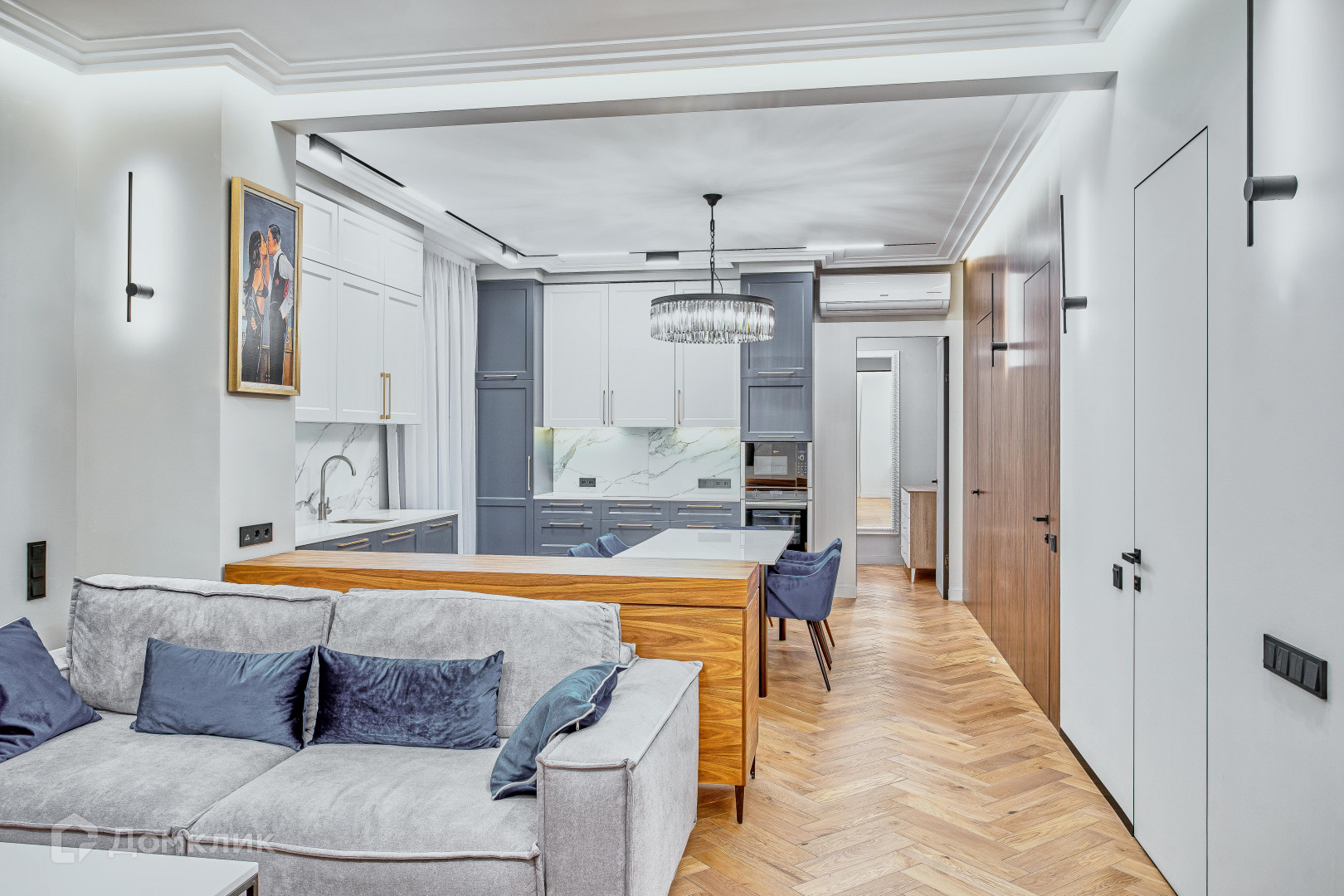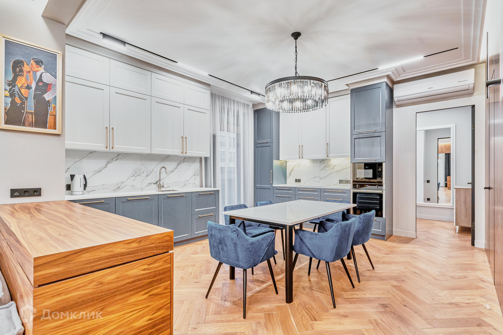 В квартире поистине идеальная планировка,которая согласована! В большой   кухне-гостиной сделано грамотное зонирование обеденной зоны и зоны отдыха. Также в квартире три просторные спальни( одну из которых можно использовать под гардеробную с окном), стильный кабинет и 2 санузла.