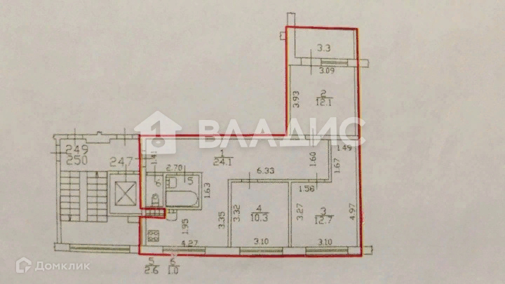 Высота потолков 2.57 м