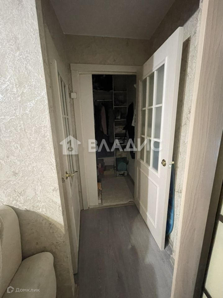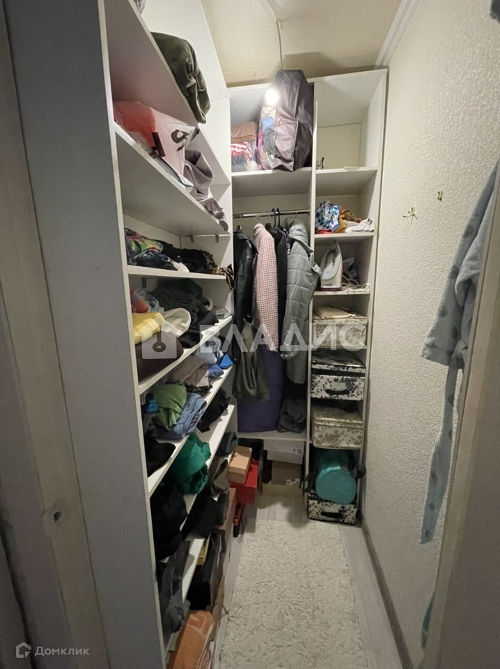 В квартире организована вместительная гардеробная с удобными секциями для хранения вещей.