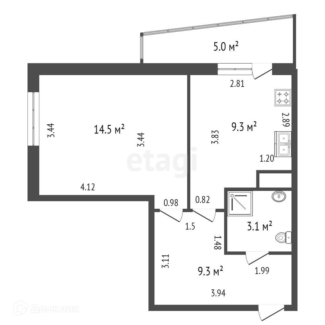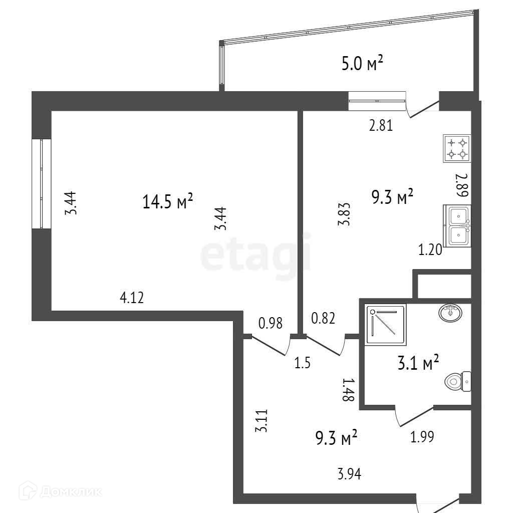 Площадь кухни 9.3 м2