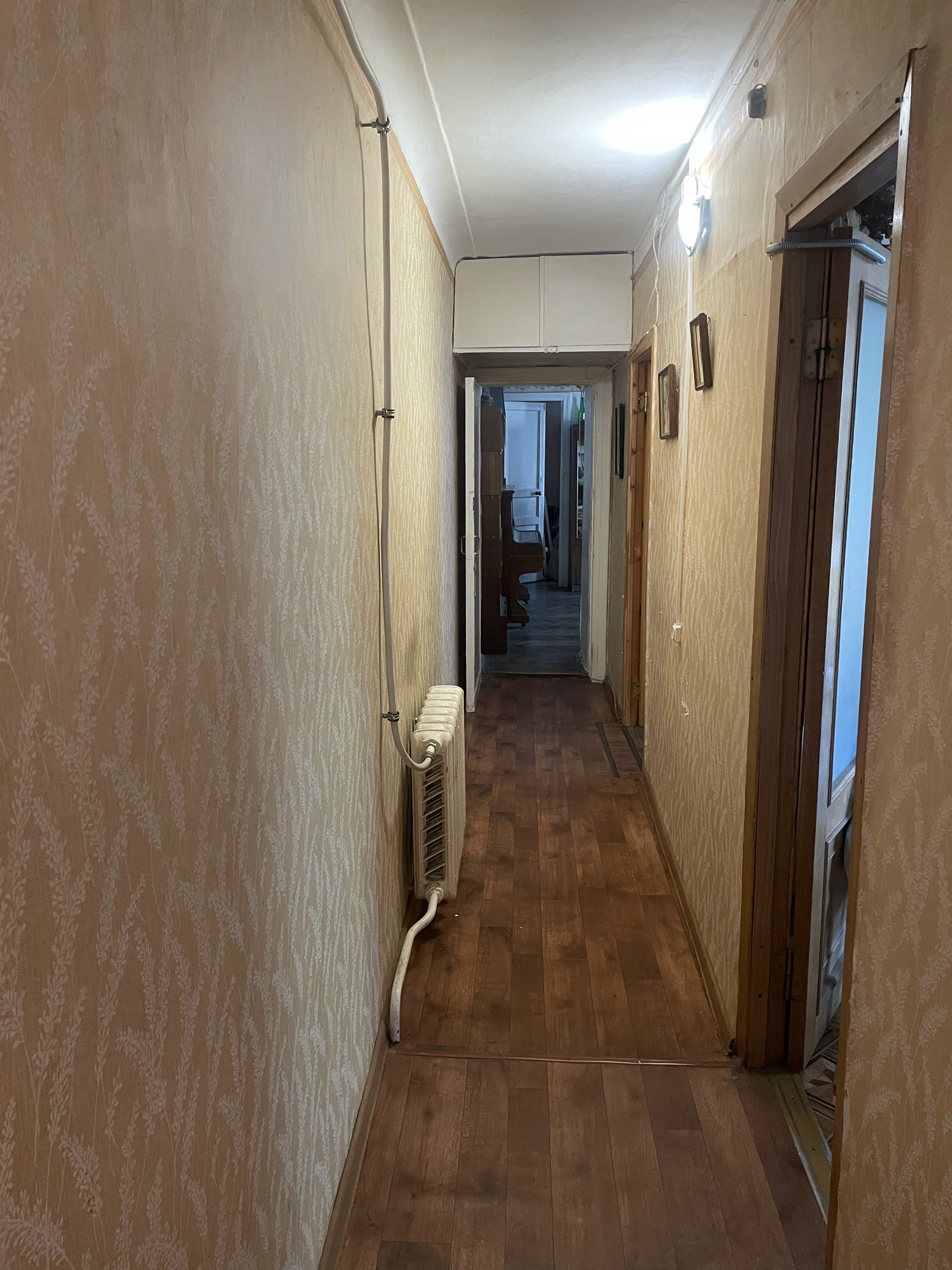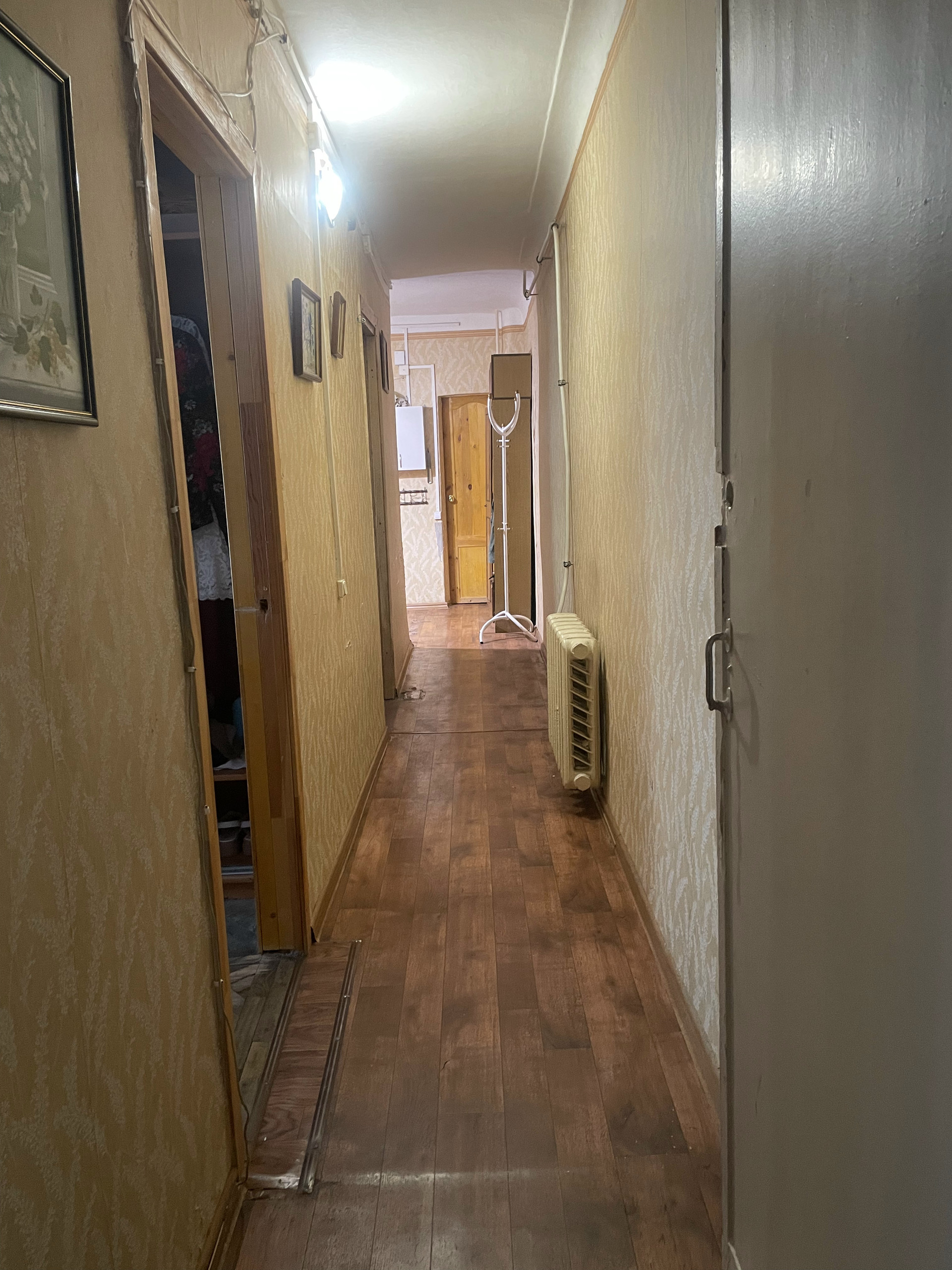 Немного о планировке квартиры: Входя в достаточно просторную прихожую - можно оттуда попасть в ванную комнату, в туалет, а так же - в длинный коридор, который ведёт на кухню, либо в одну из трех комнат.