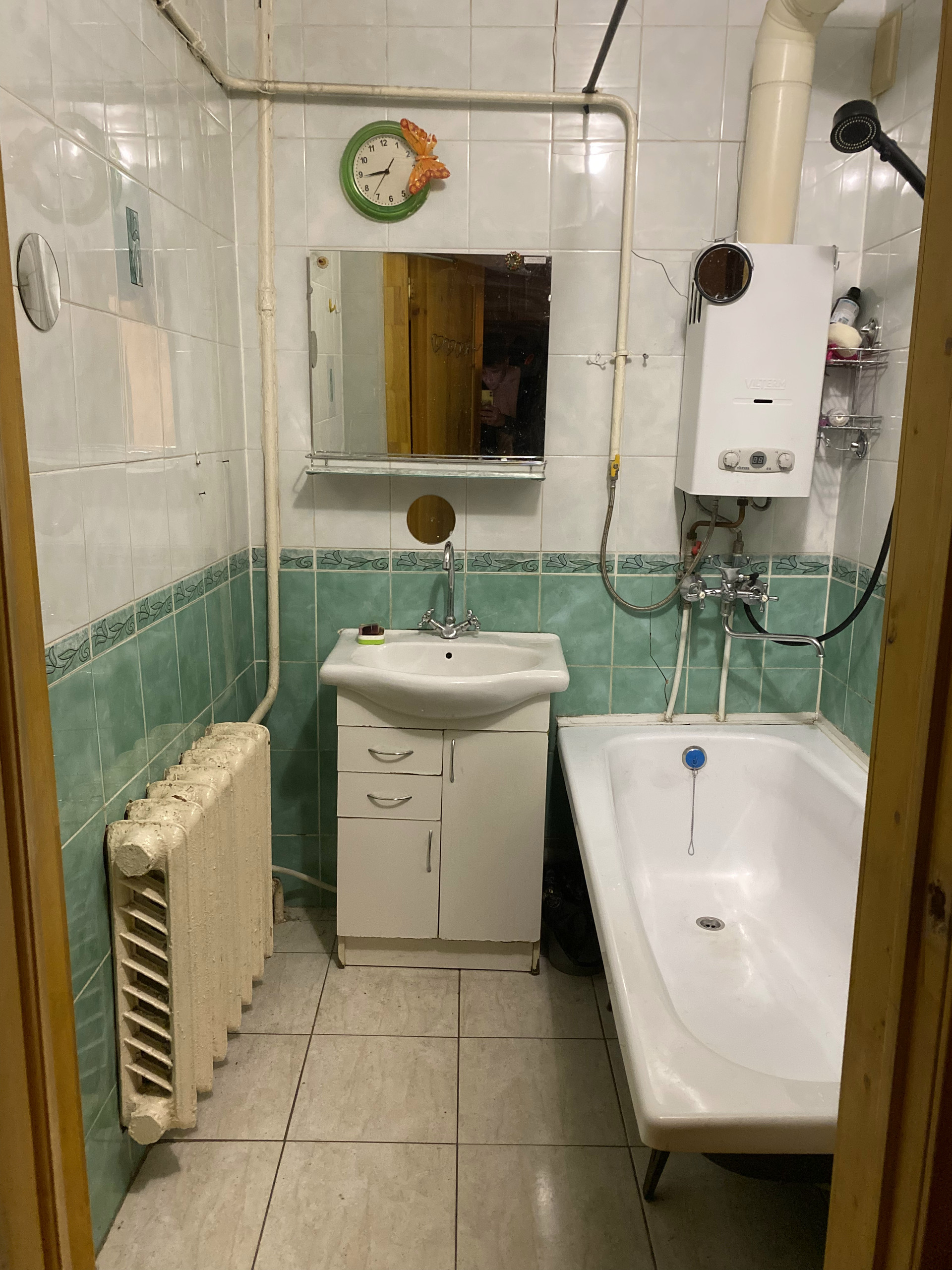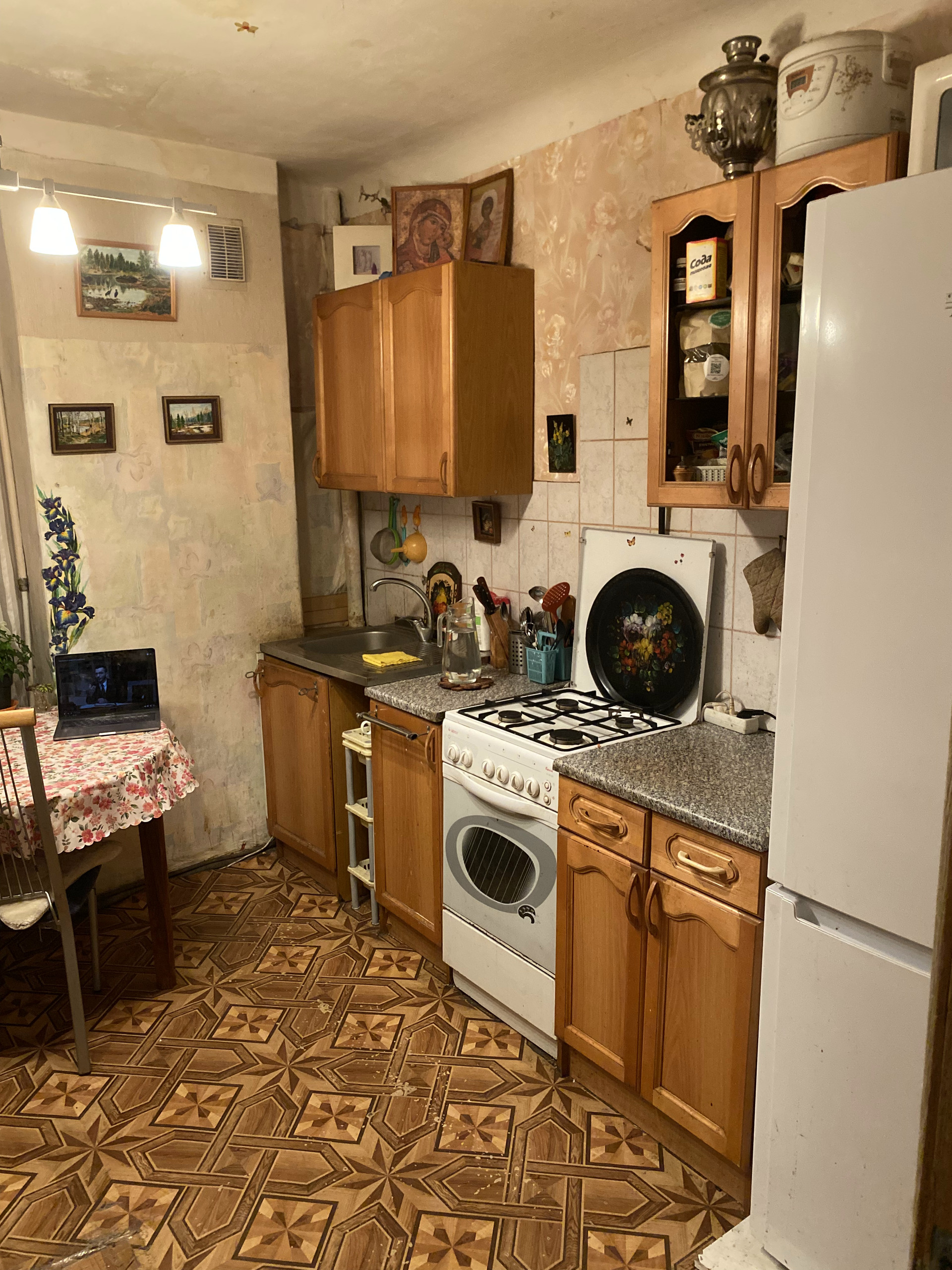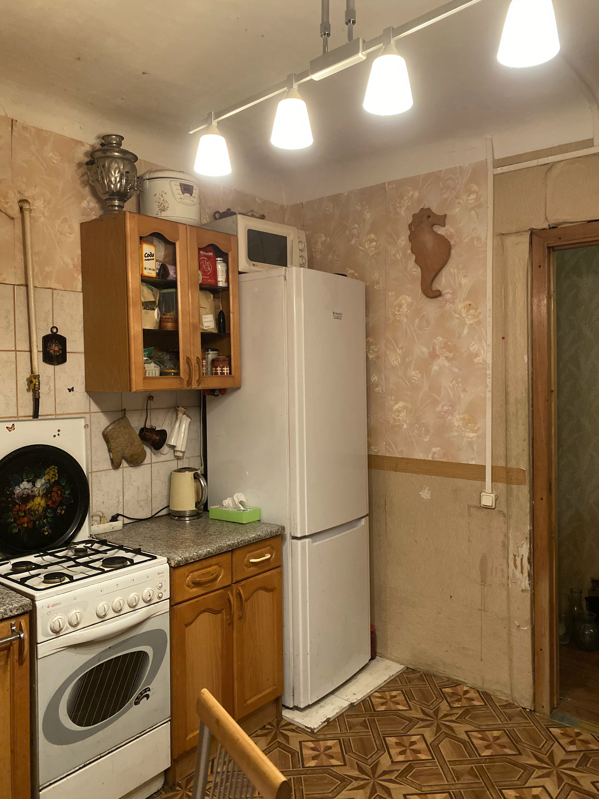 Есть газовая колонка (то есть не бывает перебоев с горячей водой). Технически квартира в полном порядке, но требуется косметический ремонт. Стены толстые, звукоизоляция от соседей абсолютная.