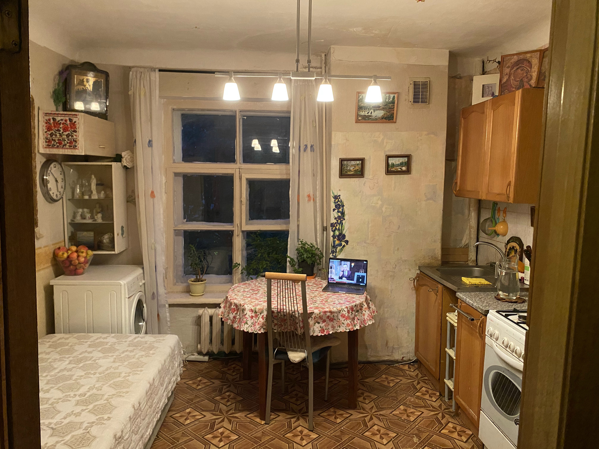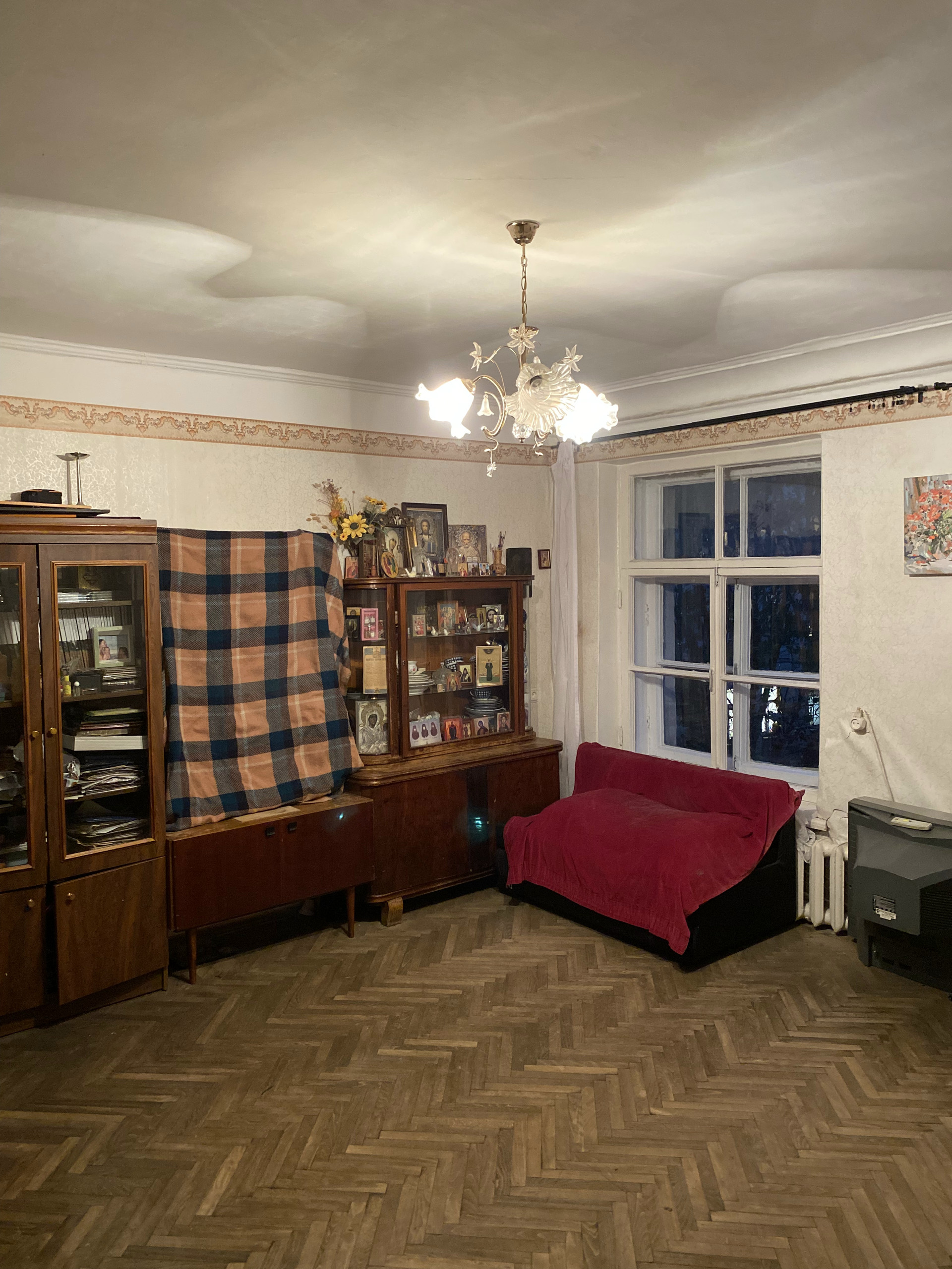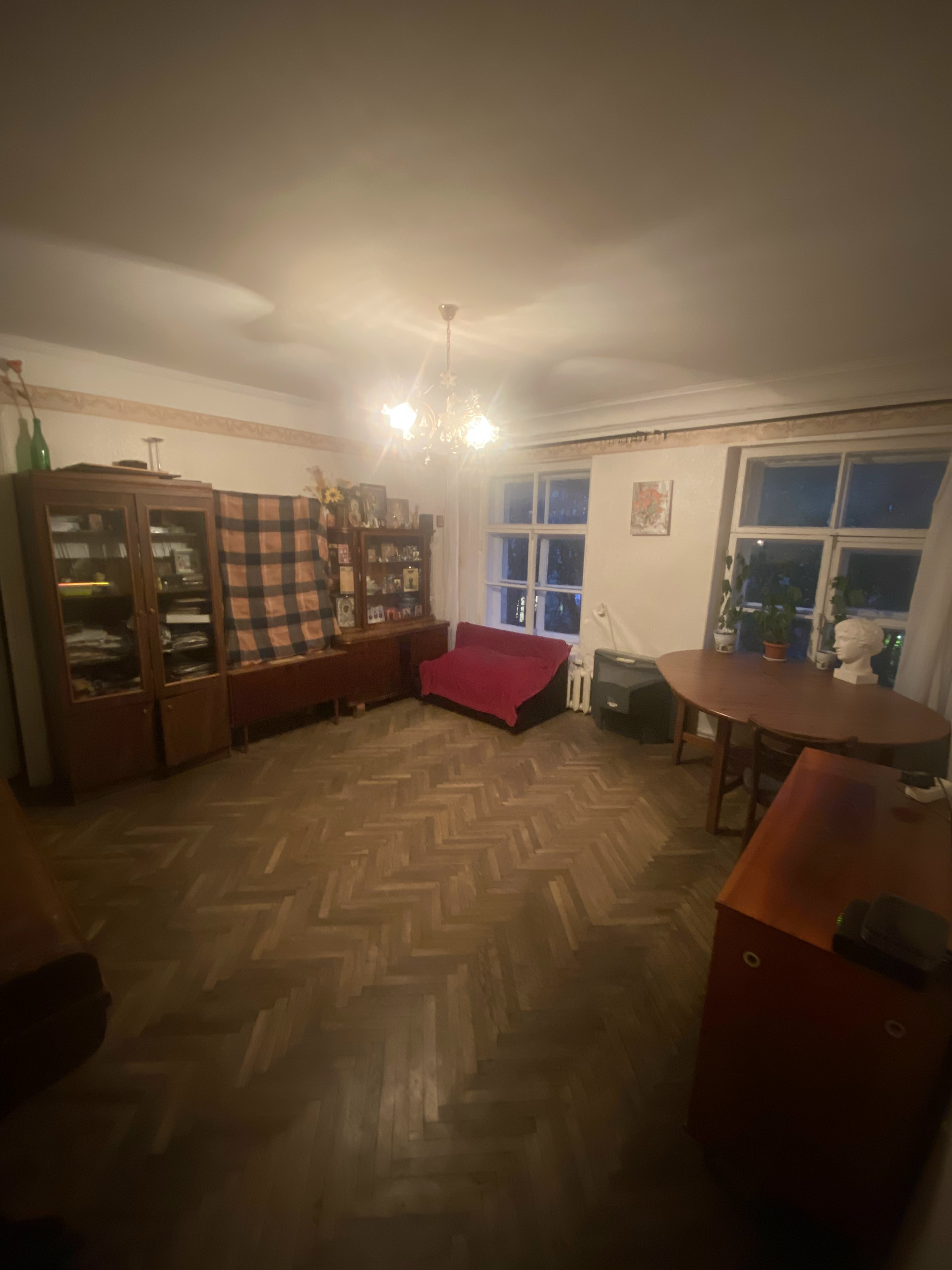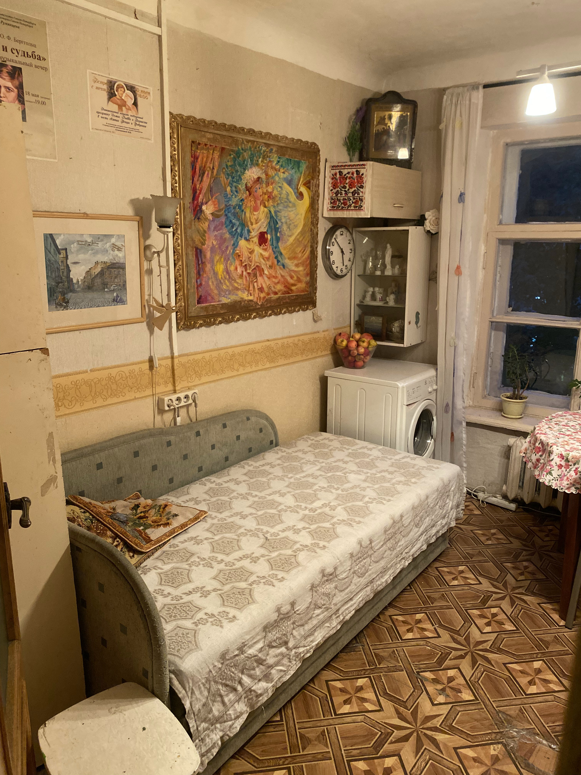 Есть газовая колонка (то есть не бывает перебоев с горячей водой). Технически квартира в полном порядке, но требуется косметический ремонт. Стены толстые, звукоизоляция от соседей абсолютная.