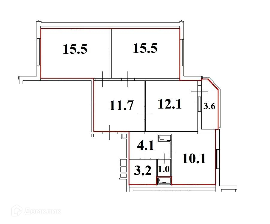 Просторные изолированные комнаты: 2 комнаты по 15, кв.метра каждая и  третья 12,1 кв.метра