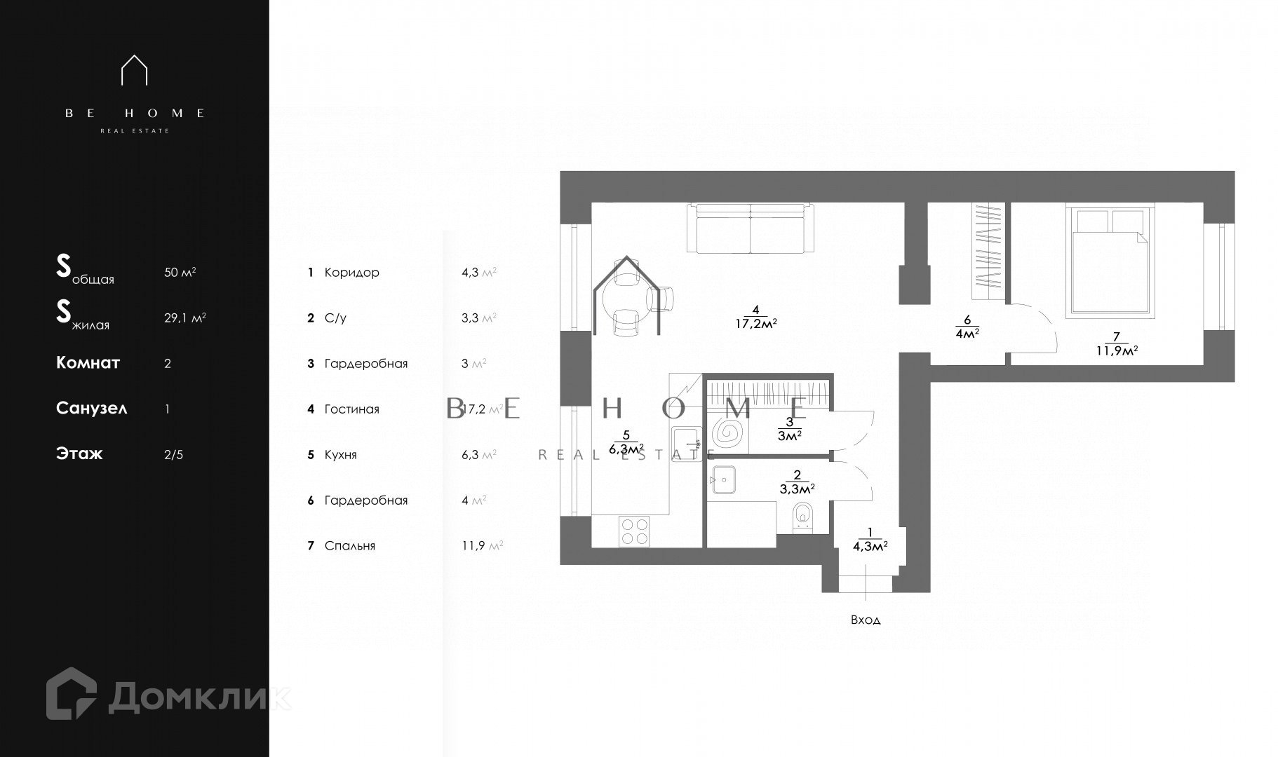 Общая площадь 50 м2