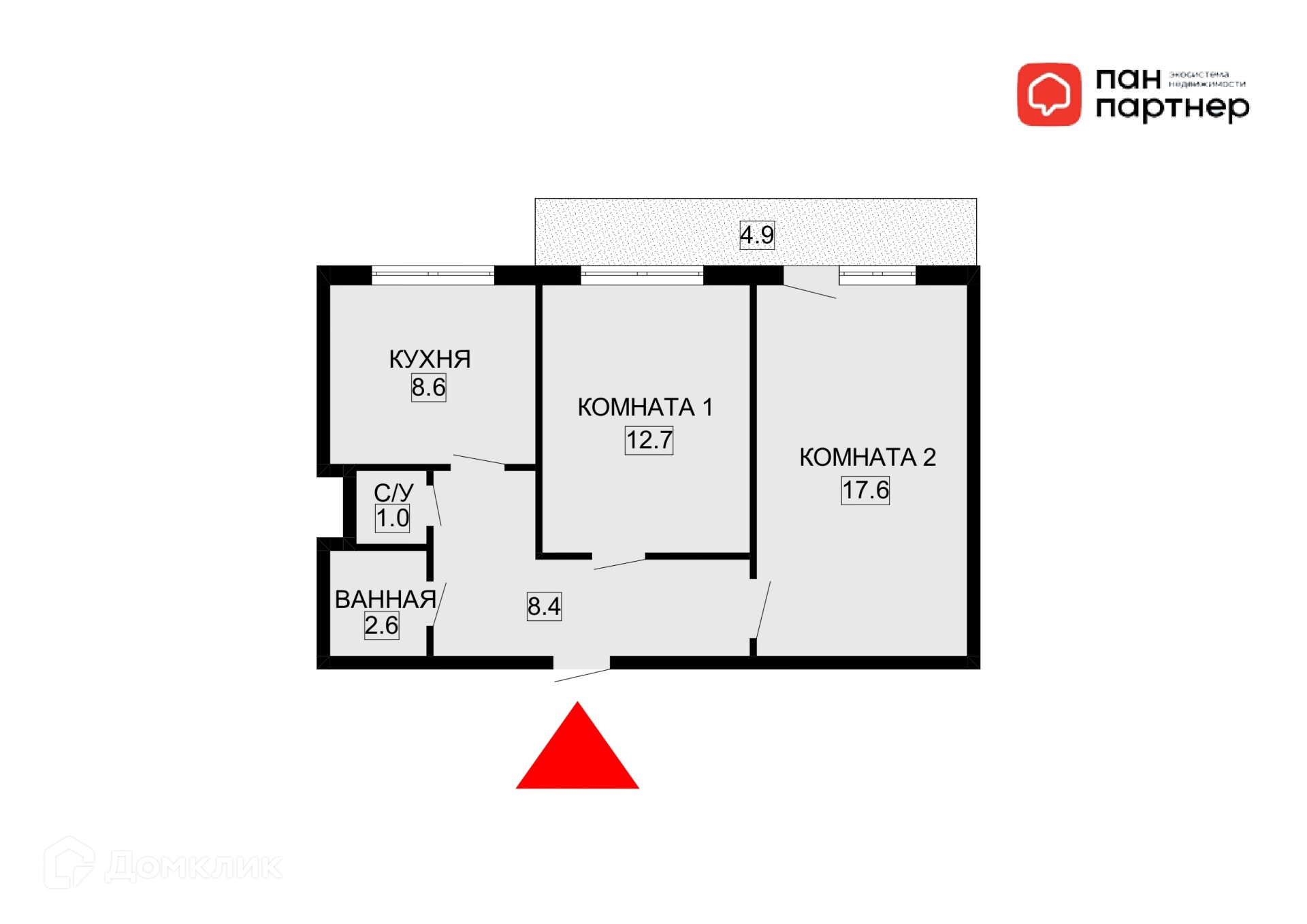 Общая площадь 50.9 м2